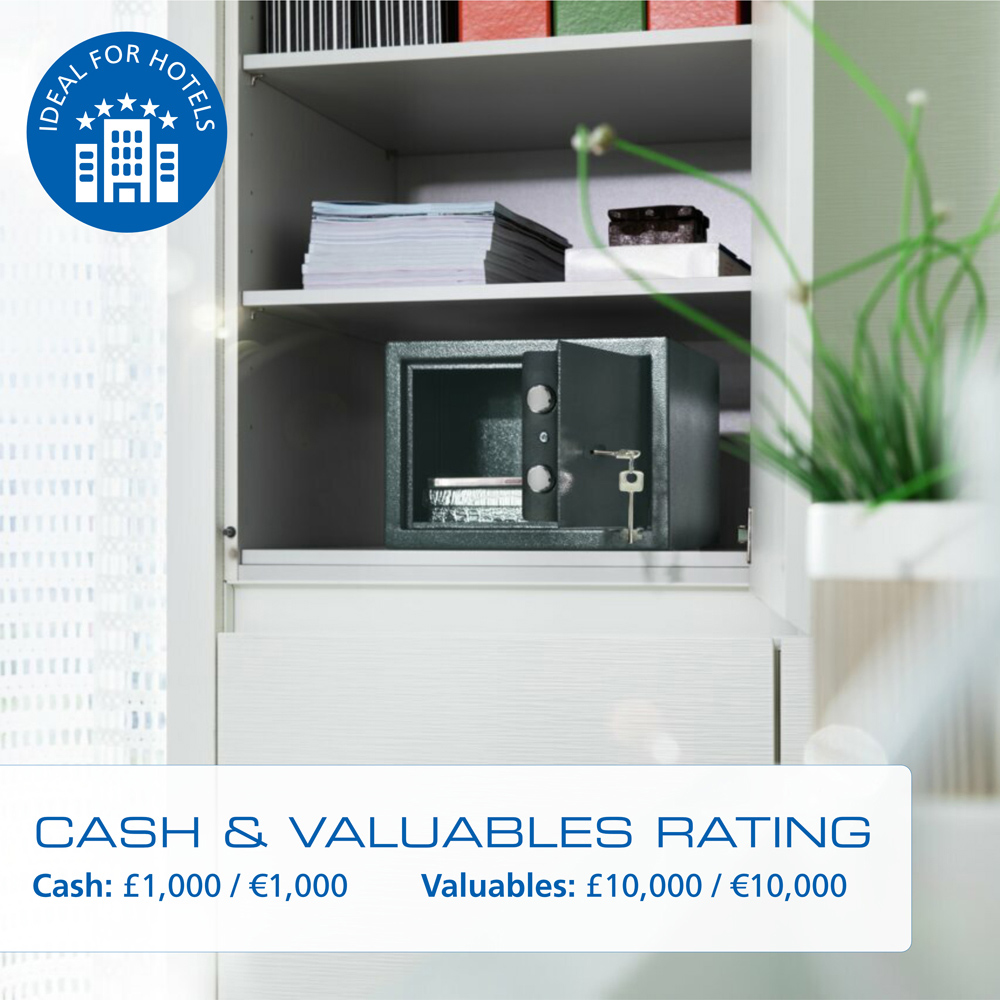 Secure your valuables with the PS 130 K Pure Safe. This 40.3L compact keyed safe offers reliable protection for money, passports, jewelry, and important documents, ideal for home or office use. Its solid walled body and double-walled door provide robust security. Two keys are included, along with mounting hardware for wall or floor installation. A removable shelf is also included. Keep your most precious belongings safe and sound.