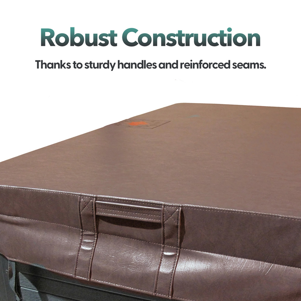 Keep your hot tub invitingly warm with the Canadian Spa Company Brown Hot Tub Cover. Its premium materials and robust construction ensure superior heat retention, defying even the harshest weather conditions—sun, rain, or snow. Enjoy easy installation and more time relaxing, knowing your investment is protected. This cover keeps your hot tub ready for use whenever you are. Sized at 213 x 213cm.