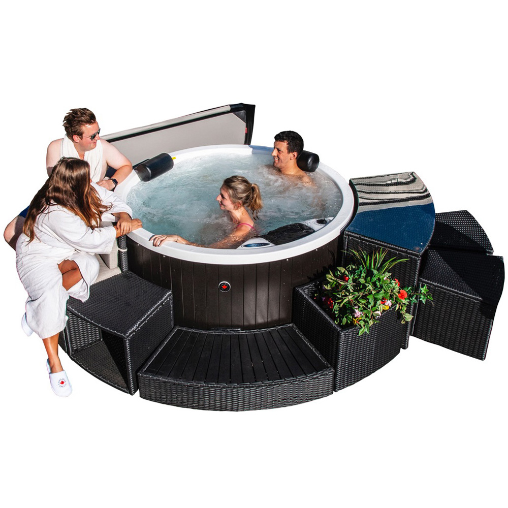 Enhance your spa with the Round Spa Surround Steps. This elegant addition provides easy access to and from your spa, boosting both style and functionality. Perfect for solo relaxation or entertaining guests, these steps add a touch of sophistication to your outdoor oasis. Upgrade your spa experience today.