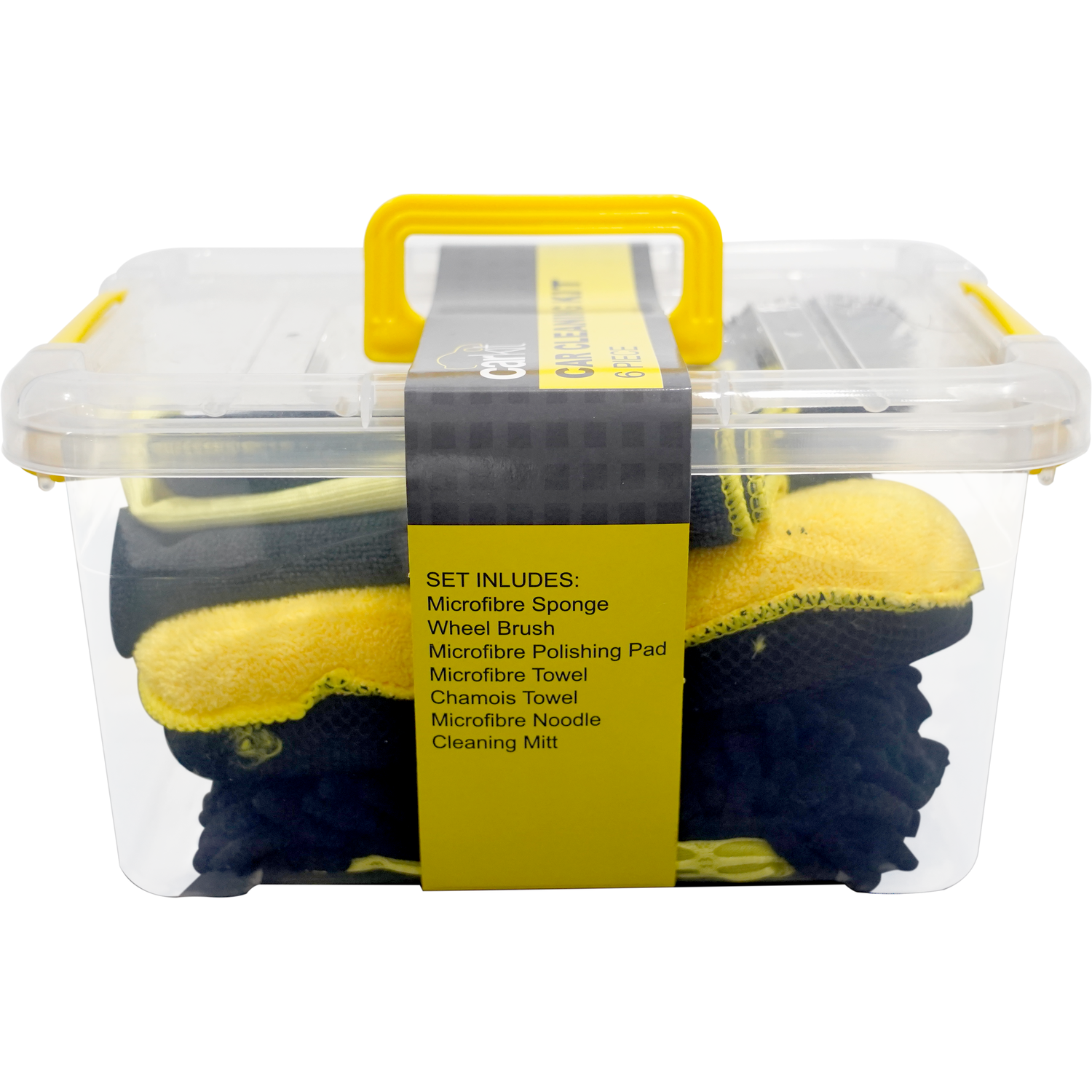 Effortlessly maintain your vehicle's showroom shine with the Carkit Car Cleaning Kit. This complete kit includes six essential cleaning tools, neatly organized within a durable storage box that also functions as a convenient bucket. A built-in handle ensures easy portability, allowing you to tackle cleaning tasks wherever needed. Everything you require for a sparkling clean is right here.
