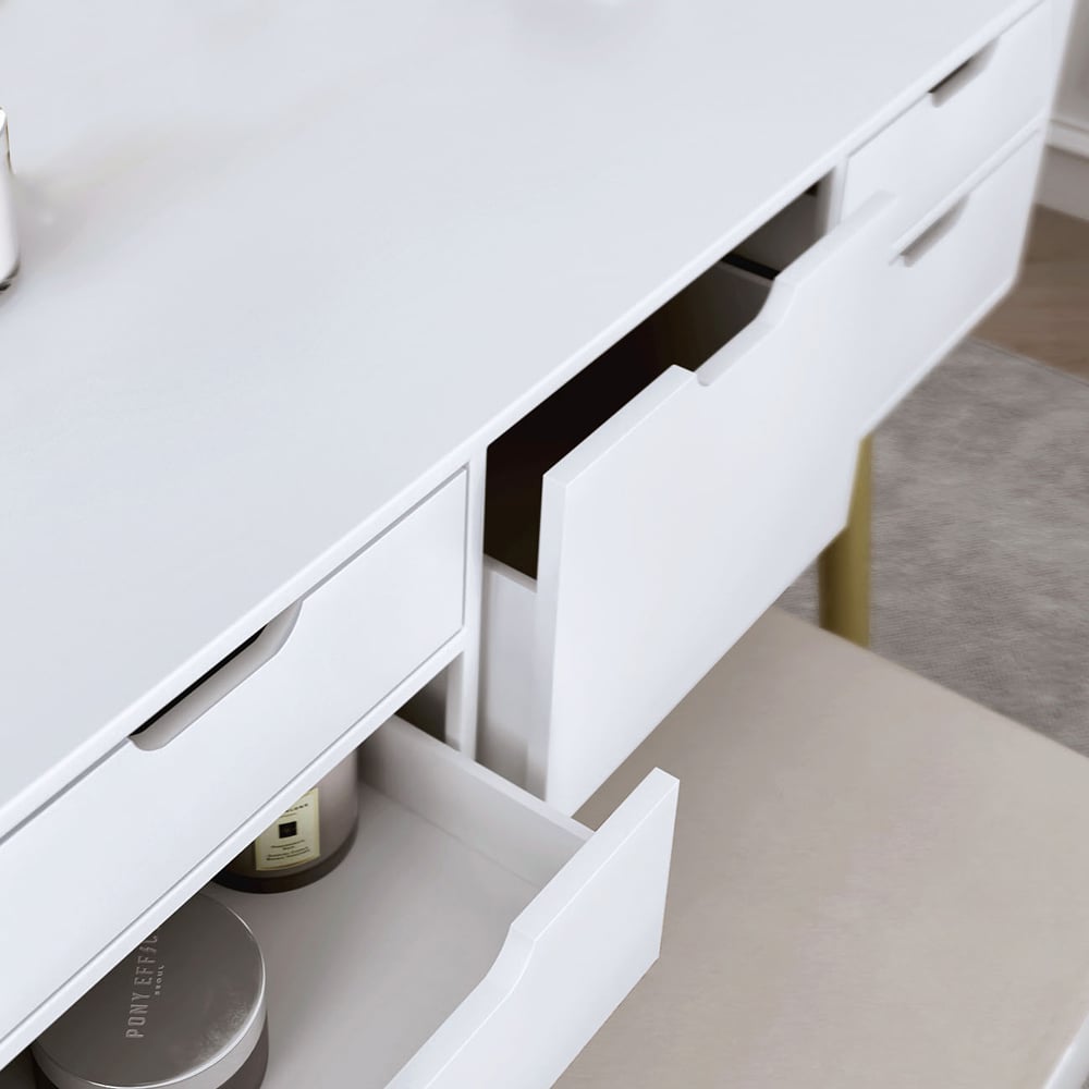 CARME Home Gabriella White and Gold 5 Drawer Dressing Table with Velvet Padded Stool