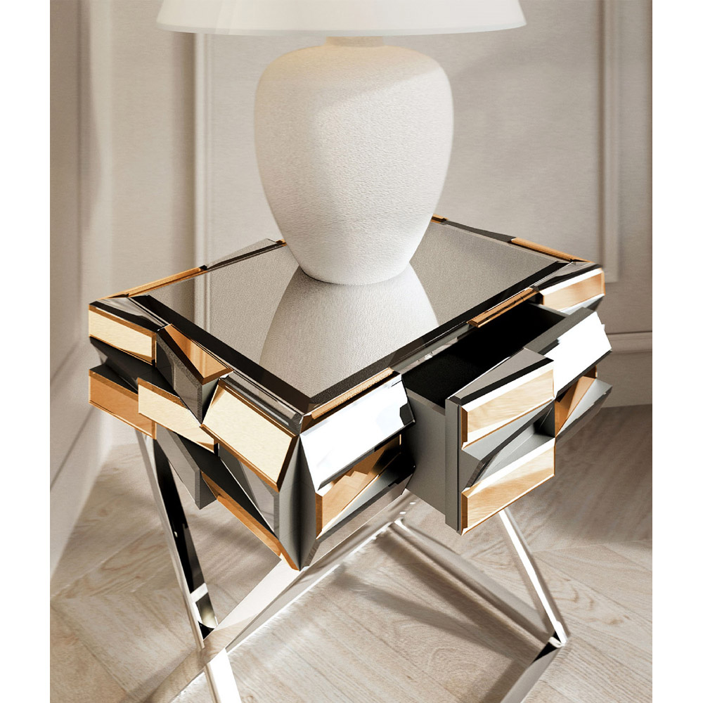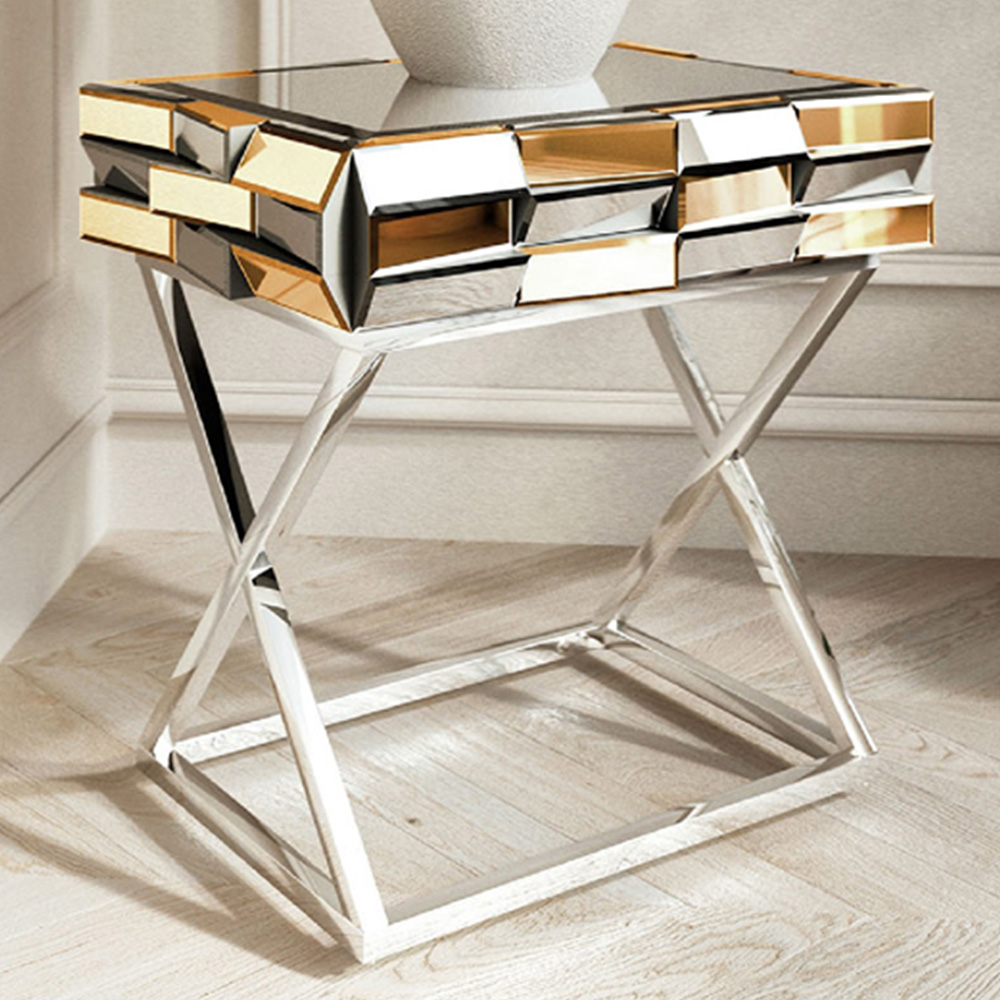 Elevate your living space with this stunning two-tone side table, showcasing a beautiful blend of rosegold and silver. Featuring a sleek drawer for convenient storage, this piece is supported by a stylish chrome leg. Perfectly suited for any room, this side table combines functionality with contemporary elegance, making it a must-have for your home décor.