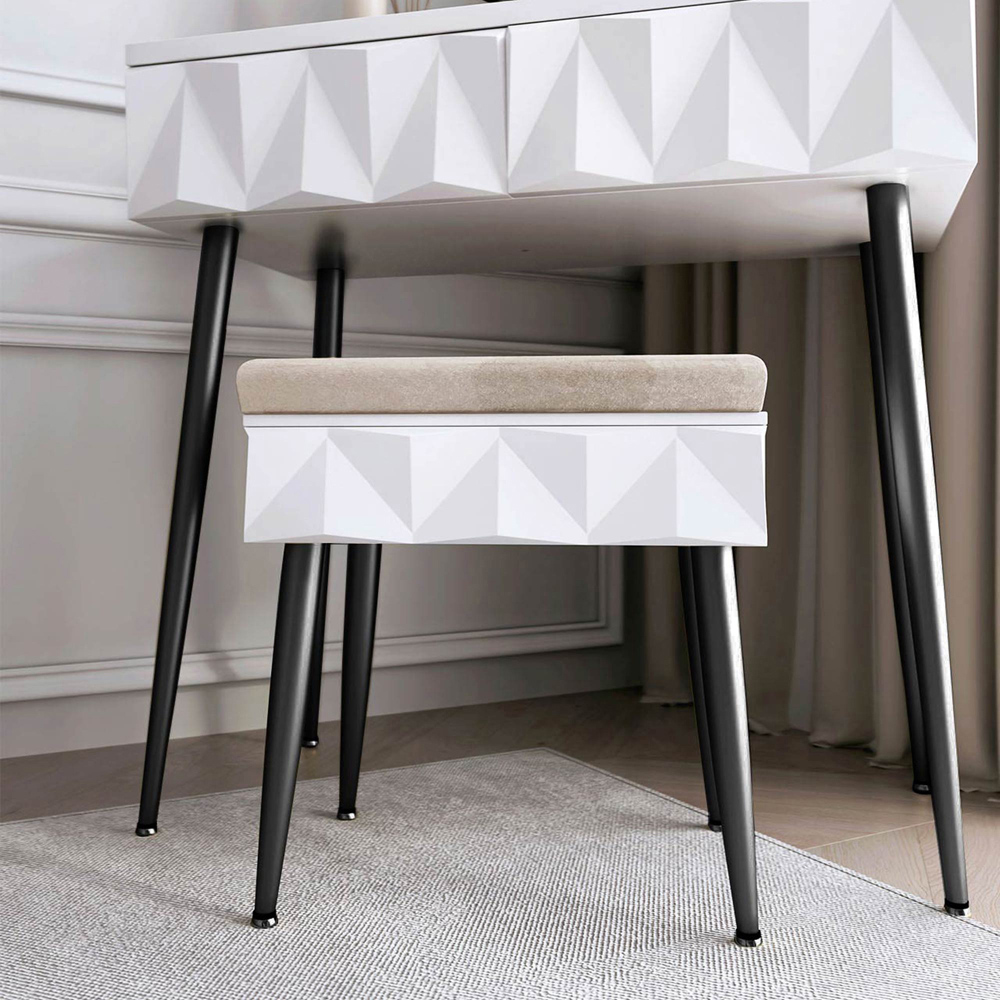 CARME Home Montana White and Black 2 Drawer Dressing Table with Padded Stool