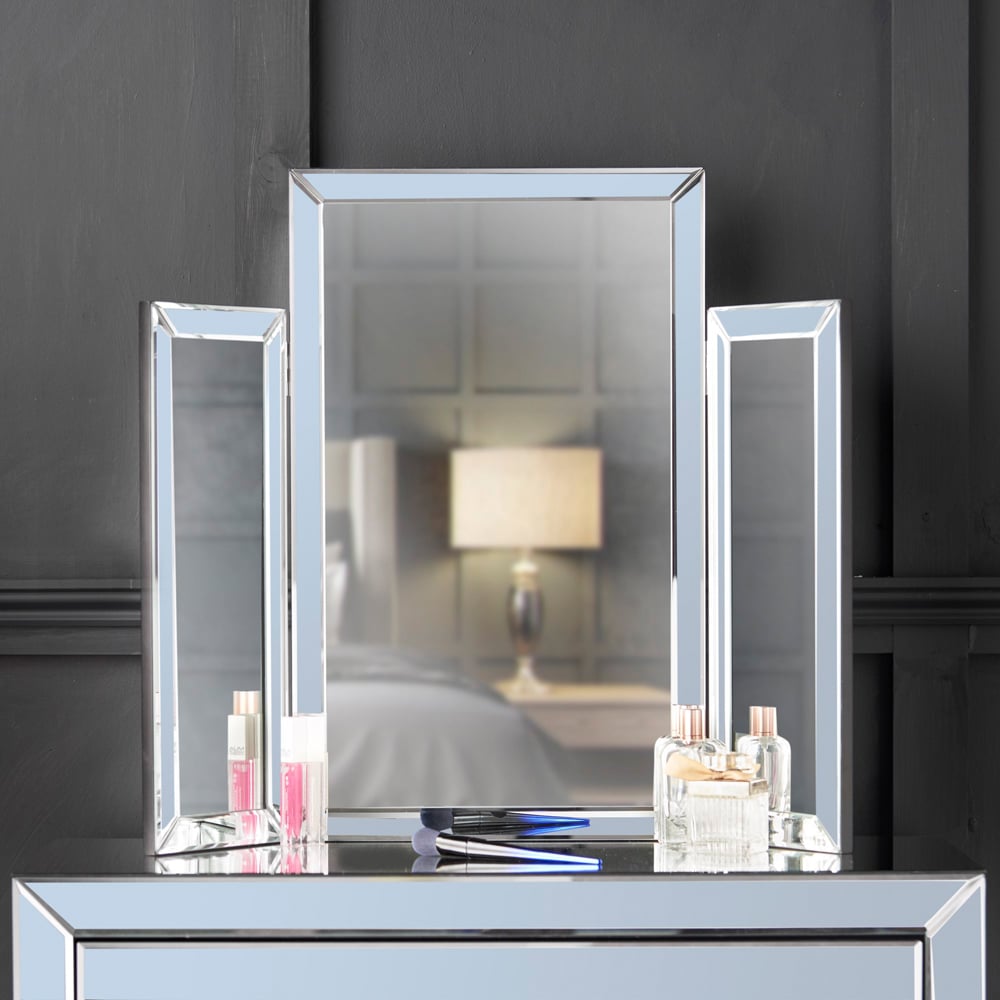 CARME Home Paloma Luxury Grey Tri-Fold Vanity Mirror