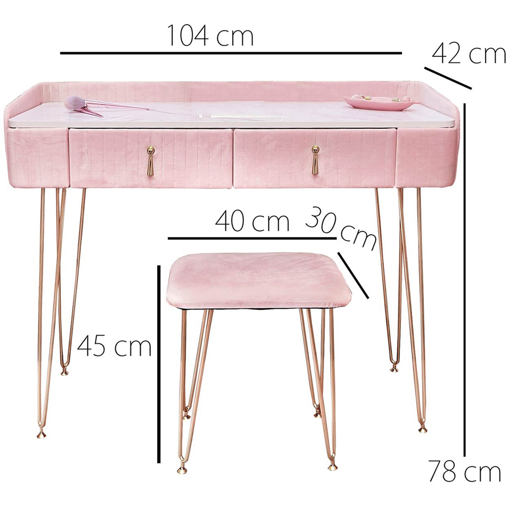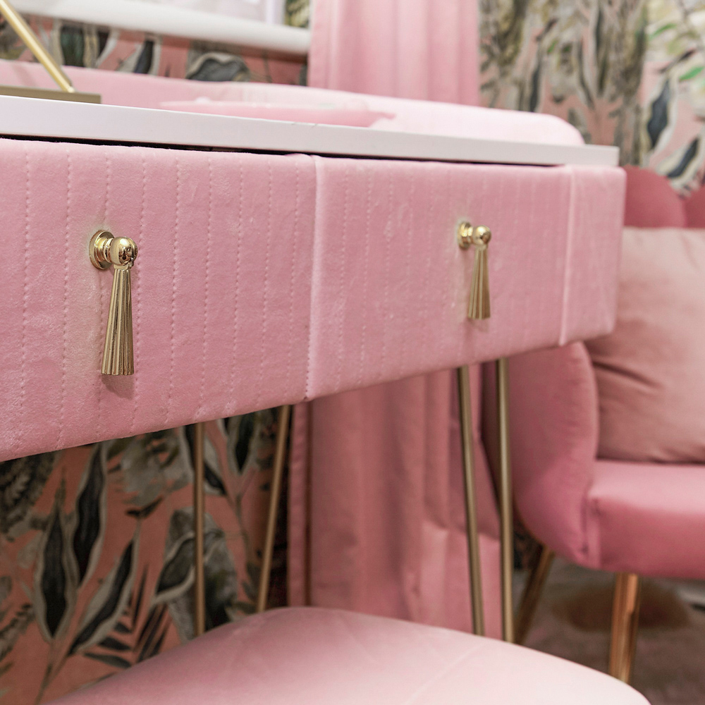 CARME Home Tokyo Glow Pink 2 Drawer Velvet Dressing Table with Stool
