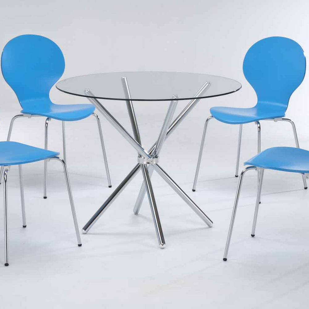 The Casa round dining table, a stylish addition to any home, features a clear glass top and gleaming chrome legs. Its minimalist design comfortably seats four, making it perfect for smaller spaces or families. Pair it with your favourite chairs (sold separately) to complete the look. This table offers both style and practicality for everyday dining.