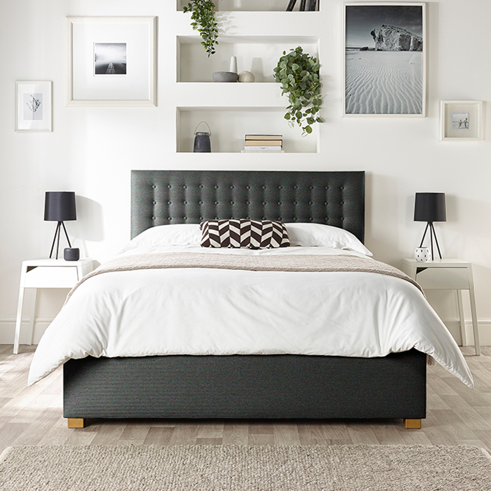 Indulge in luxurious comfort and clever storage with the Opulence Natural Twill Ottoman Bed. This small double bed, crafted in the UK, boasts a beautiful, hard-wearing twill upholstery and a deeply padded, buttoned headboard for a touch of elegant sophistication. Standing on stylish solid hardwood feet, its natural fabric finish complements any bedroom décor. The gas lift pistons provide effortless access to the generous storage area beneath, held securely in place for hands-free use. A dust sheet is included to keep your belongings clean and protected. For superior comfort and support, the bed features quality spring slats. Please note: the storage area is not a boarded base, and the mechanism supports mattresses weighing up to 60kg. Simple assembly (1-2 hours, easier with two people) is required from the flat-pack delivery. Rigorously tested to meet UK safety standards and exceeding non-mandatory structural tests, this bed offers both style and peace of mind.