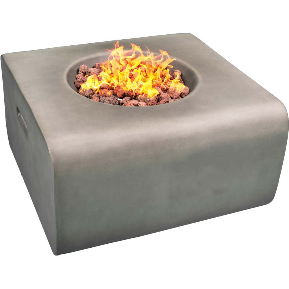 The Adelphi fire pit, with its striking squared frame, brings both elegance and practicality to your outdoor space. Finished with a beautiful real stone effect, this fire pit is perfect for adding warmth to your garden, yard, patio, or terrace. Powered by propane gas, the Adelphi radiates a consistent and even heat distribution. Starting the fire is effortless thanks to the Easy Start electronic ignition, allowing you to enjoy the warmth in seconds. The adjustable flame feature lets you tailor the temperature to your exact needs, whether it's a chilly winter evening or a mild summer night. For your convenience, the Adelphi garden fire pit arrives fully assembled and includes a 3-metre gas hose, gas regulator, decorative red lava rocks, clear and concise safety instructions, and a waterproof protective cover to shield it from dust, leaves and rain. Boasting a concrete-influenced design, the Adelphi propane fire pit is constructed from durable and heatproof Eco-Stone composite fibre. It delivers 40,000 BTU of heat and is CE Certified. Dimensions: 58.5cm (W) x 58.5cm (D) x 30.5cm (H).