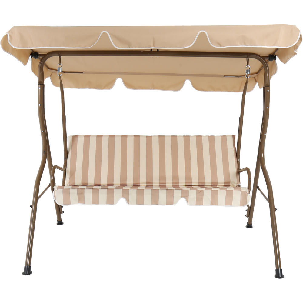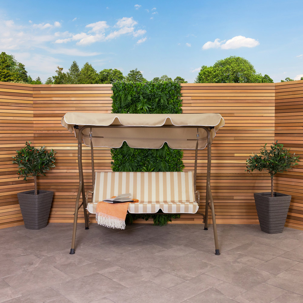 Charles Bentley 3 Seater Beige and White Garden Swing Seat