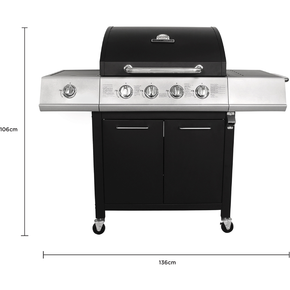 Charles Bentley 4 Burner + 1 Side Burner Gas BBQ Black