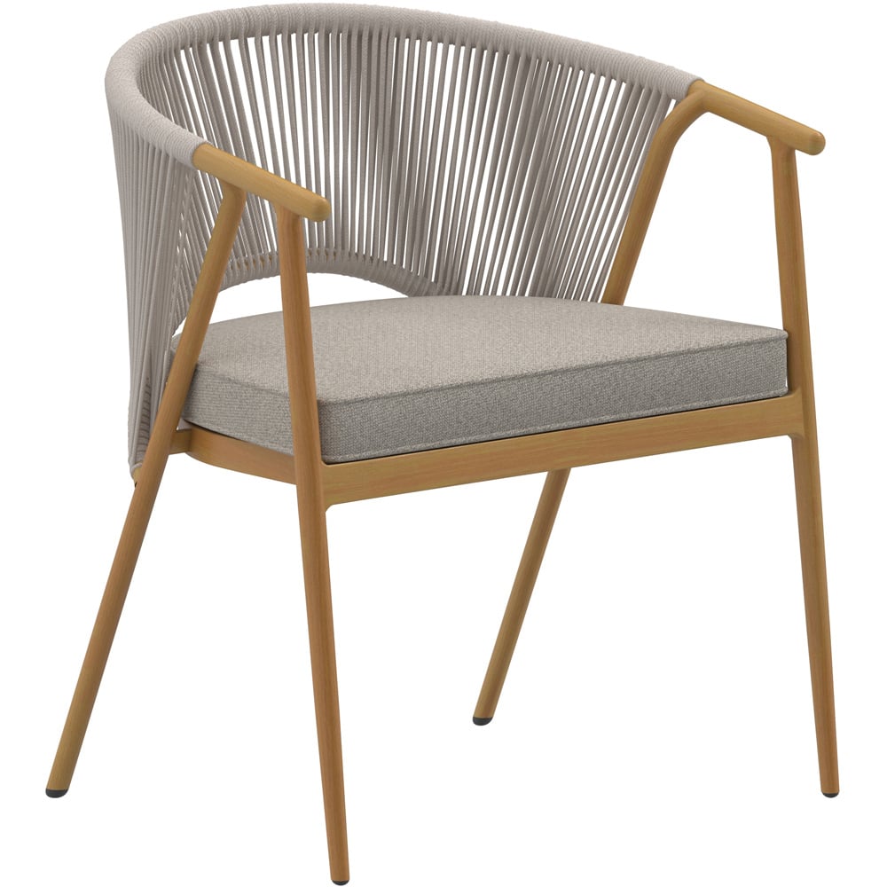 Bring timeless style to your outdoor space with the Almada Bistro Set, perfect for smaller gardens, patios, or balconies. The durable aluminium frame, finished with a stylish wood effect, offers the beauty of natural wood alongside strength and low maintenance. Enjoy morning coffee or evening drinks on the sophisticated round wood-effect tabletop. The elegantly crafted rope weave chairs add a distinctive mid-century charm, creating a delightful spot to relax.