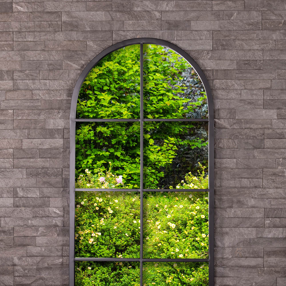 Charles Bentley Bern Black Arch Window Outdoor Wall Mirror 165 x 55cm