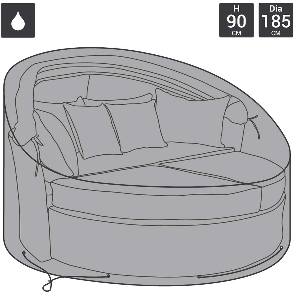 This Charles Bentley black polyester cover safeguards your rattan day bed from pollen, dust, dirt, and rust, ensuring it's always ready to use. Made from durable, PVC-coated 300 x 600D polyester, it includes reinforced aluminium eyelets and a securing cord for a snug fit. The cover enables compact storage and is suitable for day beds approximately 185cm in diameter and 55-90cm high.