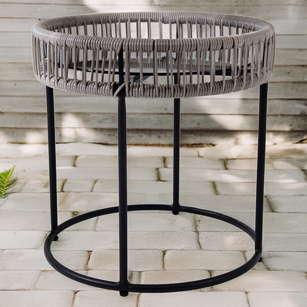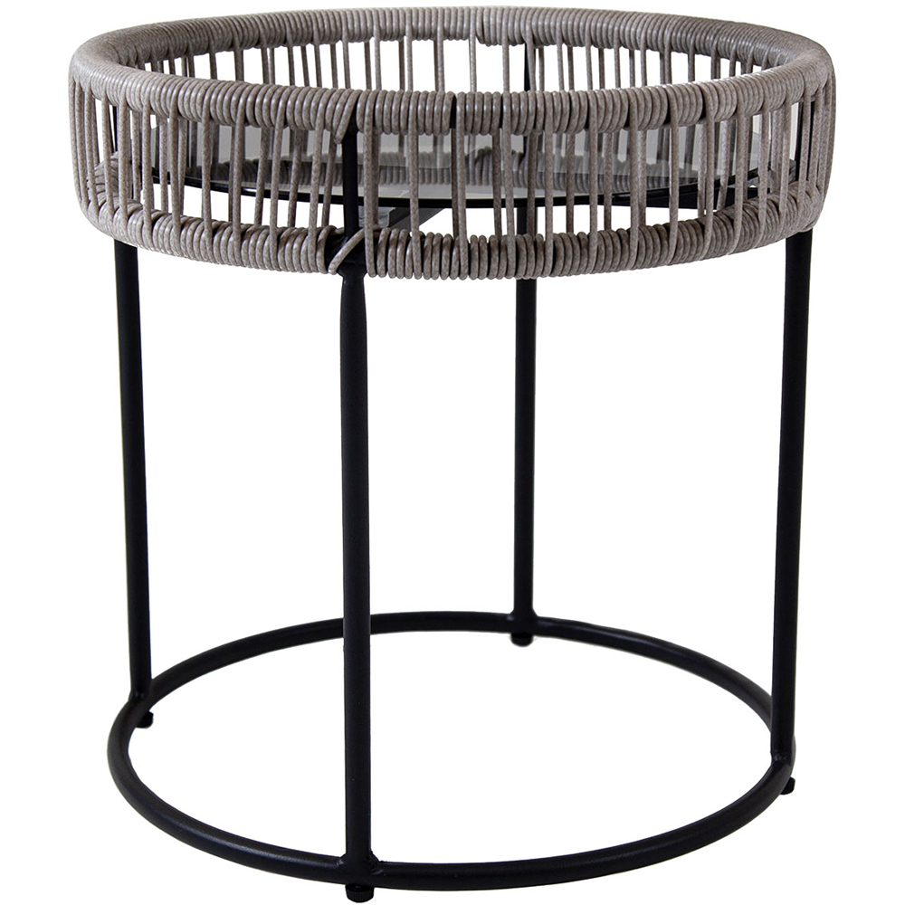 This stylish coffee table, perfect for indoor or outdoor use, boasts a contemporary design. Its elegant glass top is beautifully framed by grey wicker, creating a sophisticated look. The grey wicker design adds a touch of charm to any setting. Dimensions: H45 x D43 x W43cm. One side table is included. Keep your table looking its best with our durable, waterproof garden furniture covers – a wide range is available to find the perfect fit.