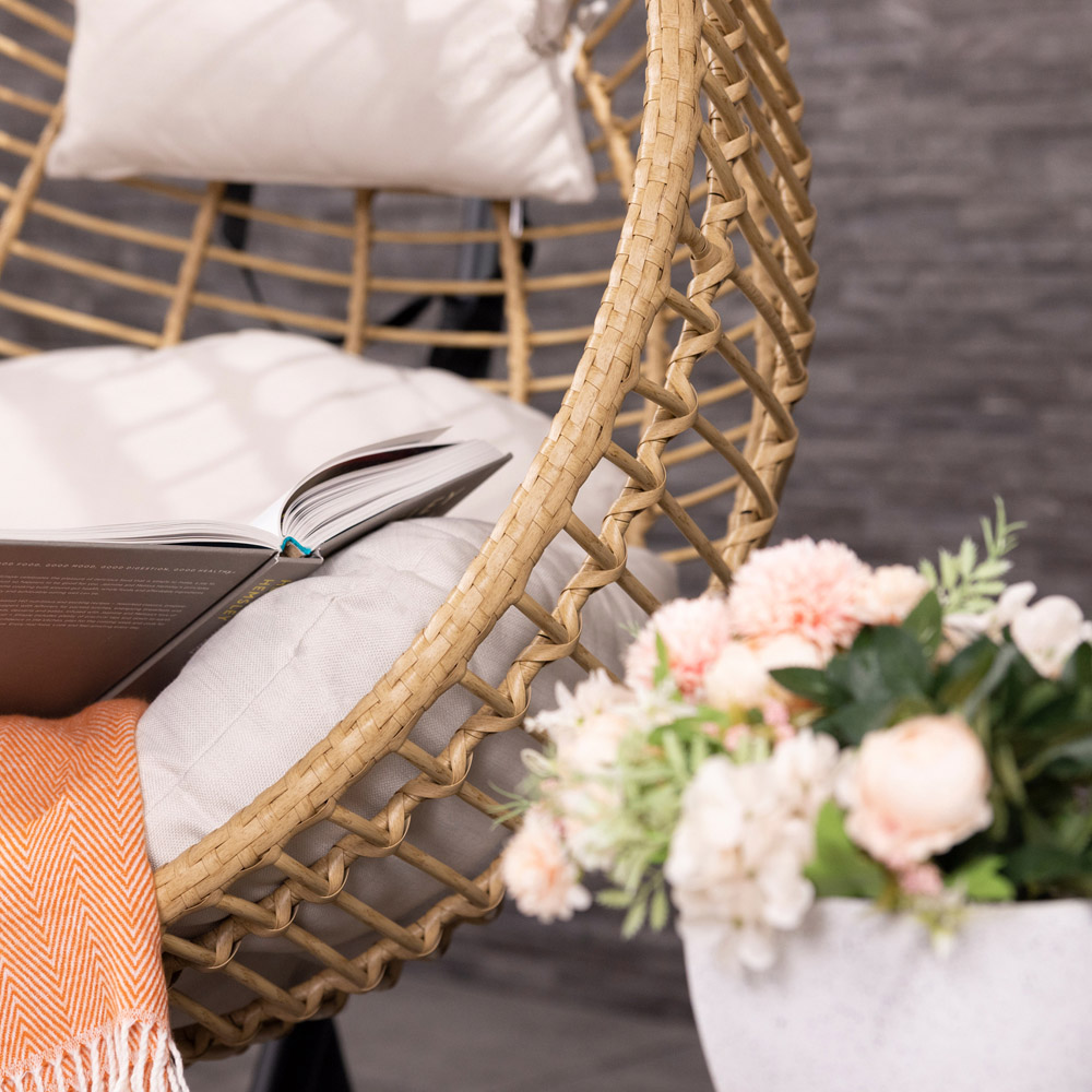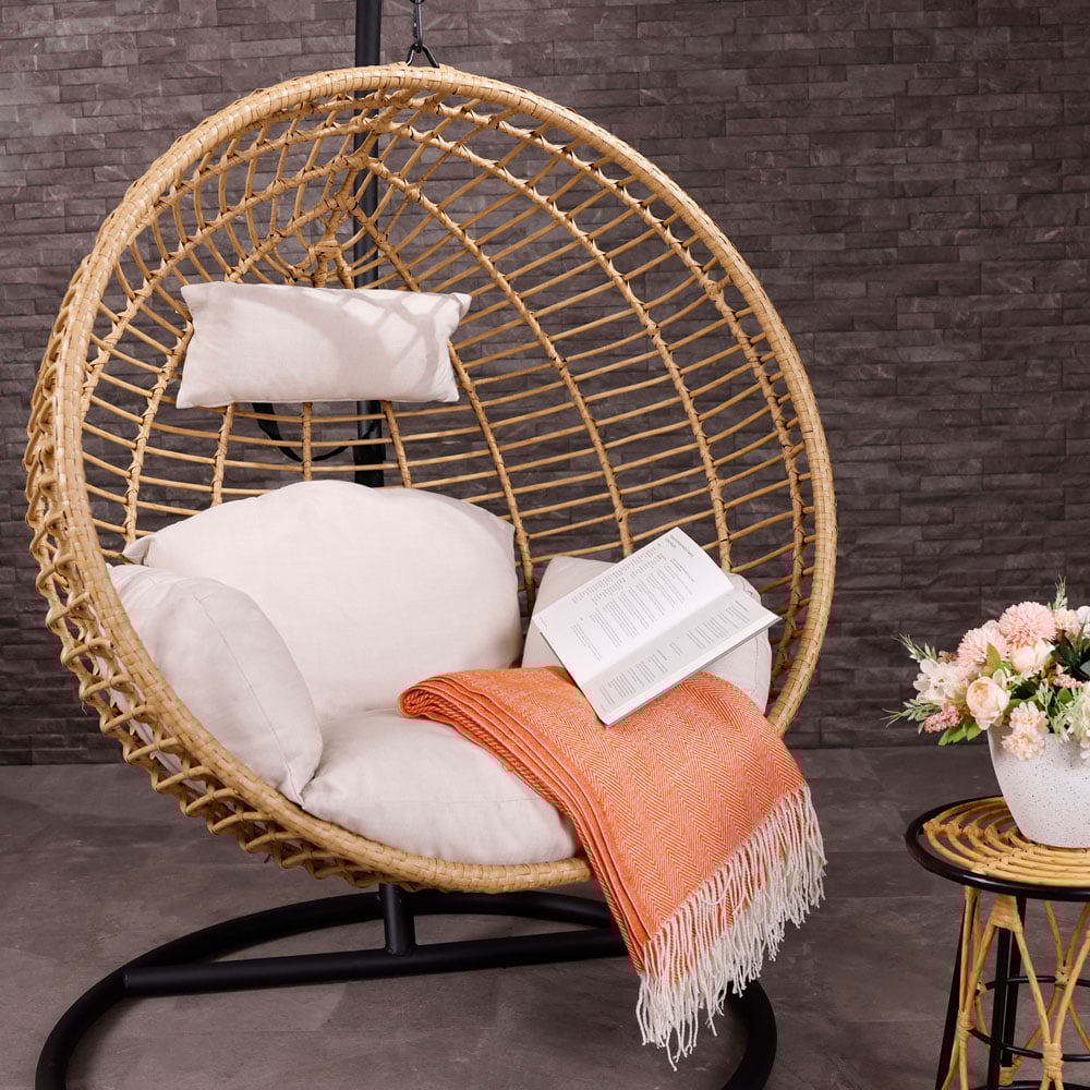 Charles Bentley Natural Rattan Effect Swing Egg Chair with Cushions