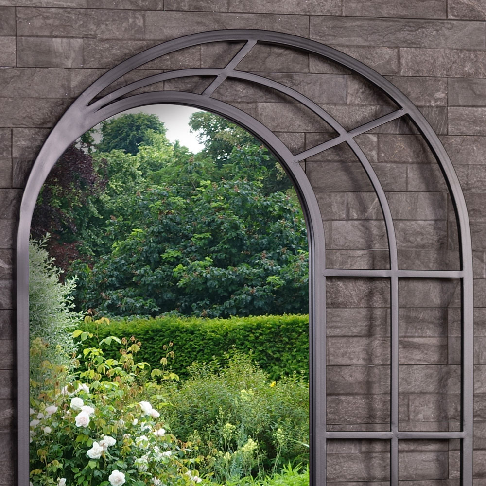 Charles Bentley Paris Black Arch Window Outdoor Wall Mirror 95 x 60cm