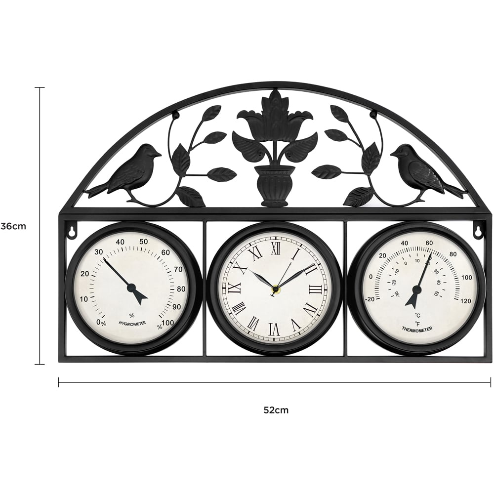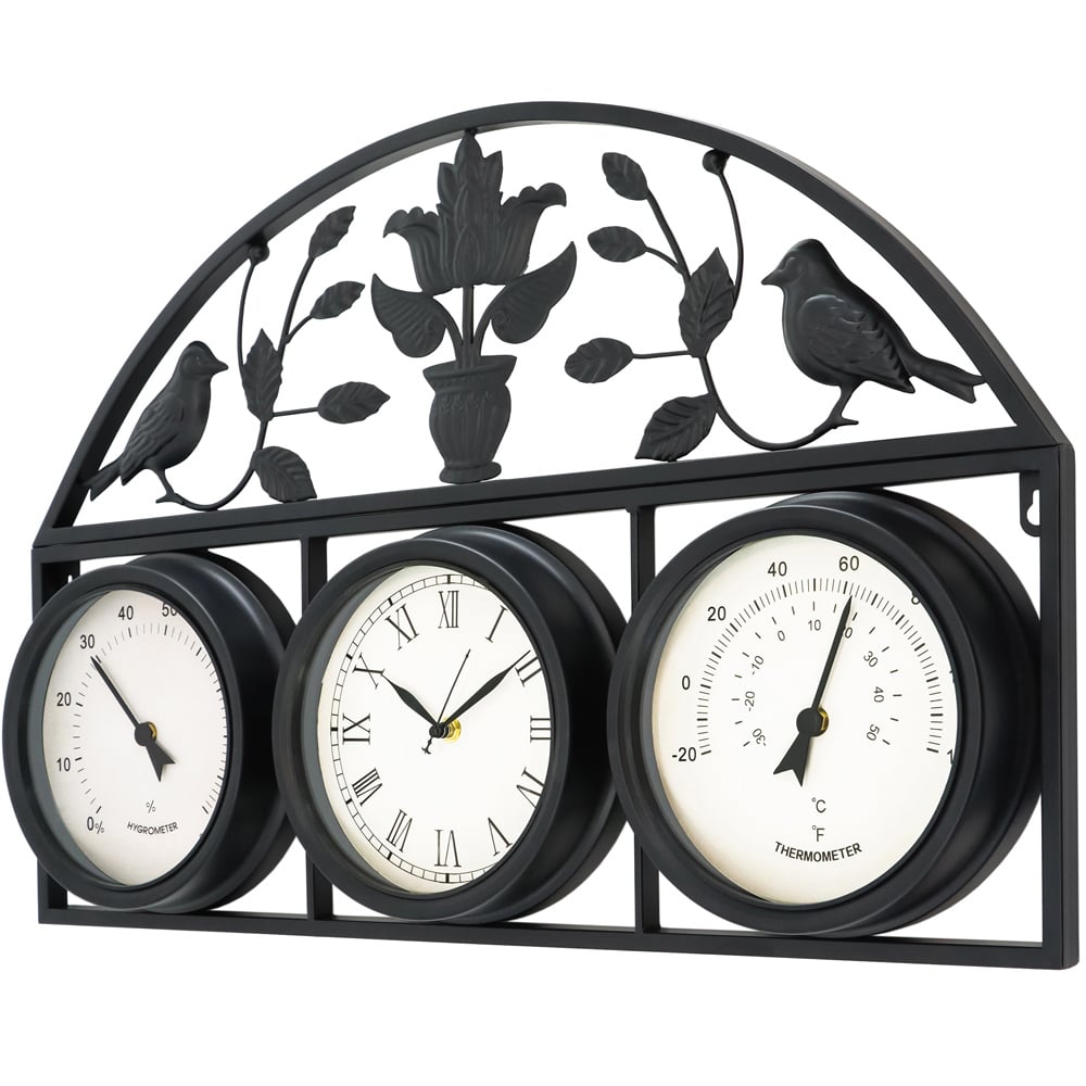 • Includes clock, thermometer and hygrometer