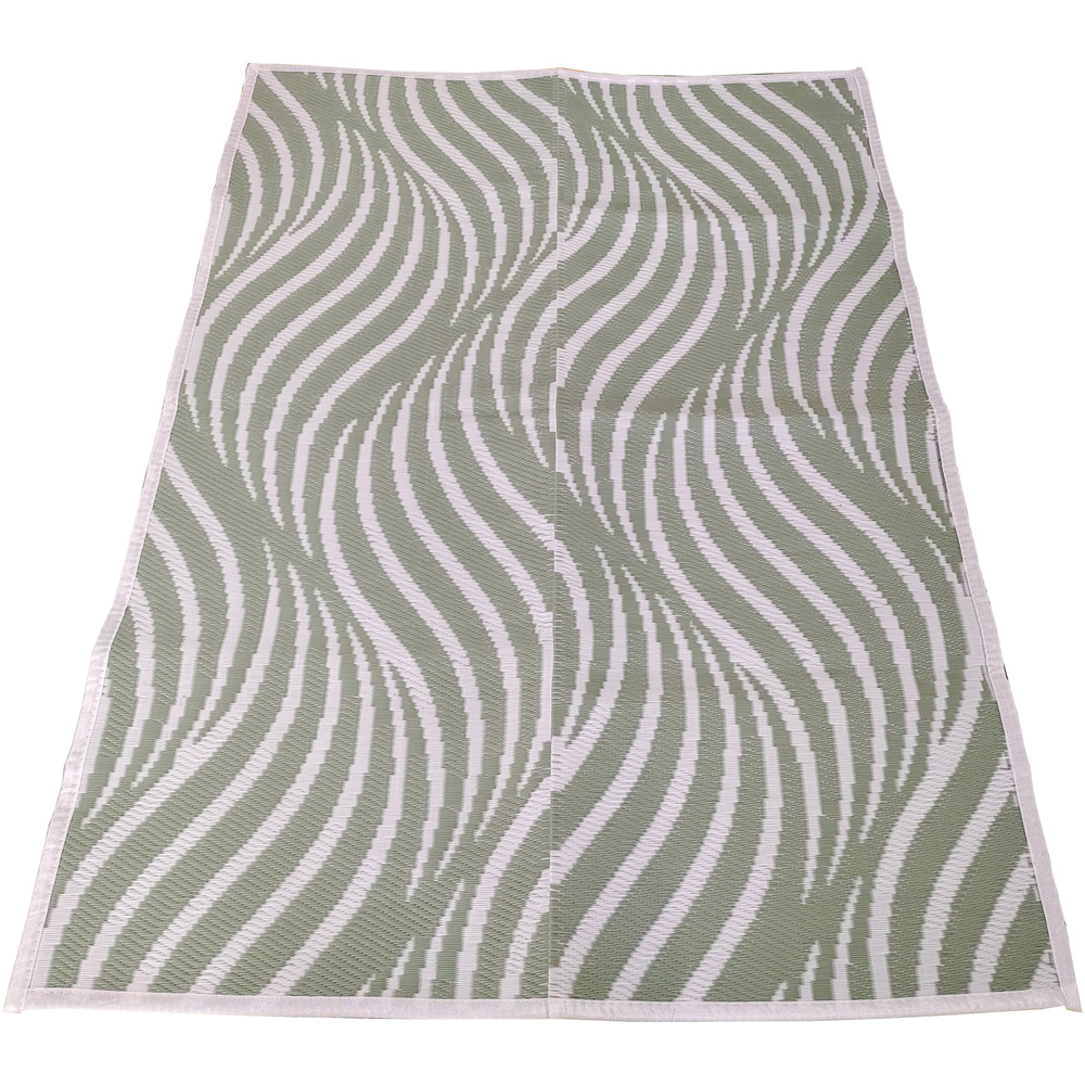 Elevate your outdoor space with the stylish 120 x 170cm Green Wave Outdoor Rug. Its eye-catching wave design instantly updates patios, gardens, and other outdoor living areas. But its versatility doesn't stop there, this rug is equally at home indoors, adding a touch of modern style to hallways, kitchens, or conservatories. Crafted from 50% recycled, weatherproof material, it's easy to clean with a simple sponge and boasts excellent UV resistance. For optimal care, store indoors during winter. Note: The rug arrives folded and may be slippery when wet.