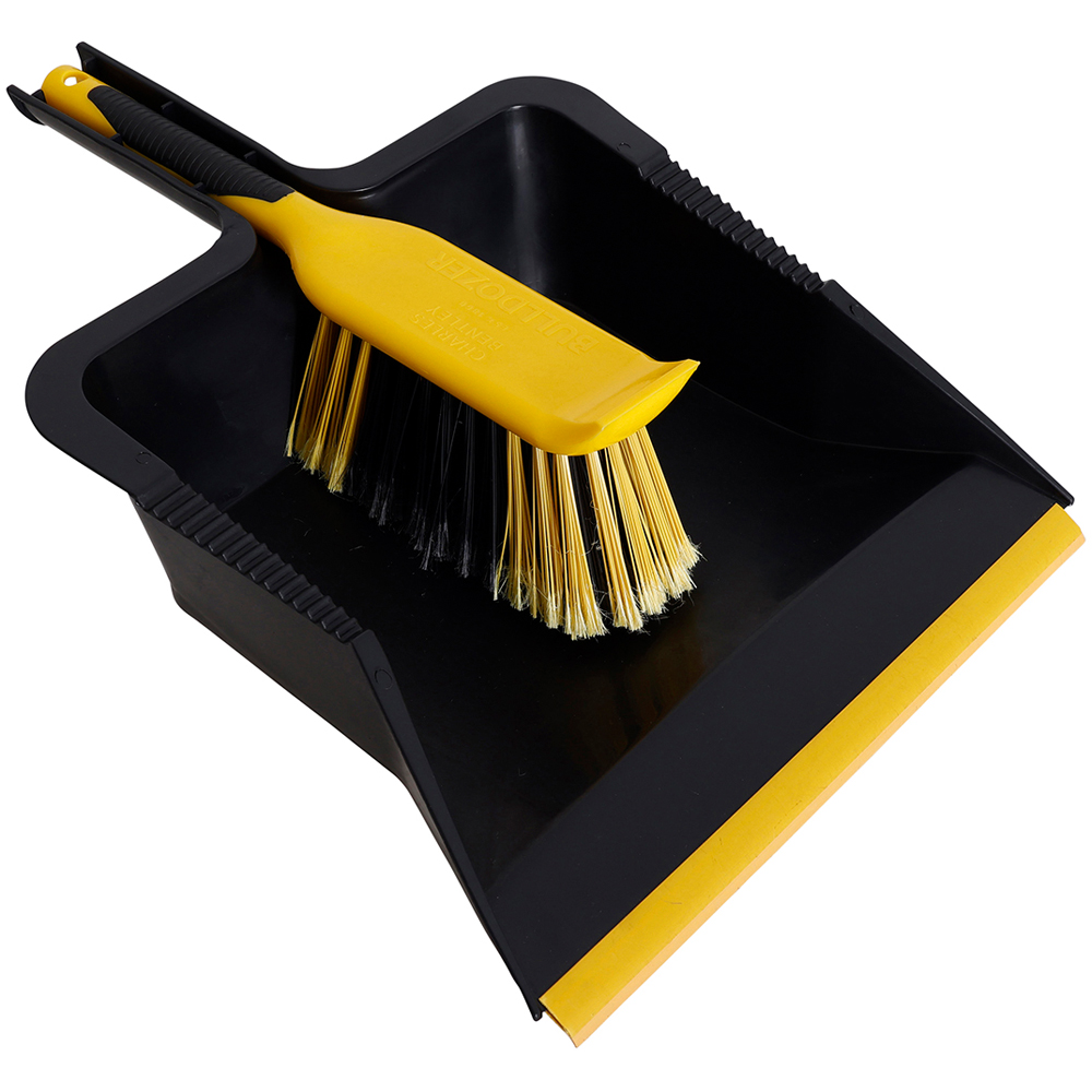Sweep away dirt and debris with ease using the Charles Bentley Yellow Bulldozer Dustpan and Brush Set. This heavy-duty set features a hand brush with both stiff and soft PVC-flagged bristles, providing optimal cleaning for various messes. An integrated rubber lip ensures thorough collection of even fine particles by moulding to any floor or hard surface. Serrated edges on the brush further assist in removing stubborn dust and dirt.