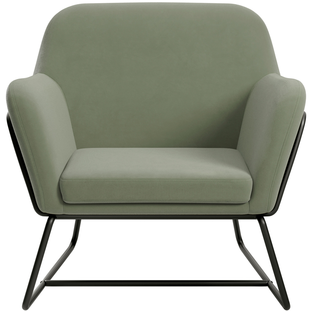 Elevate your living space with the Charles armchair, a stylish addition that effortlessly blends sophistication and comfort. Its matte black frame and sage green velvet upholstery create a refined and inviting atmosphere, perfect for unwinding in style. Clean lines and a comfortable design make this armchair the ideal spot to relaxe.