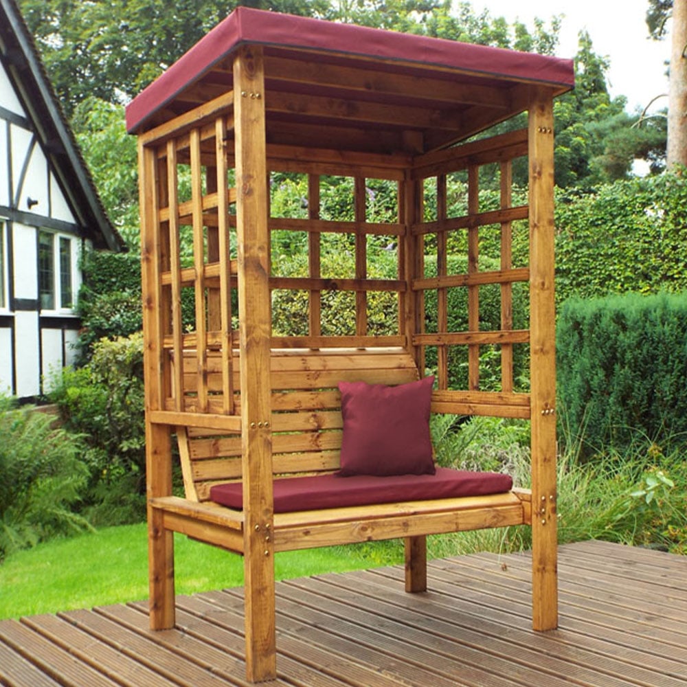 Charles Taylor Bramham 2 Seater Wooden Arbour with Burgundy Canopy