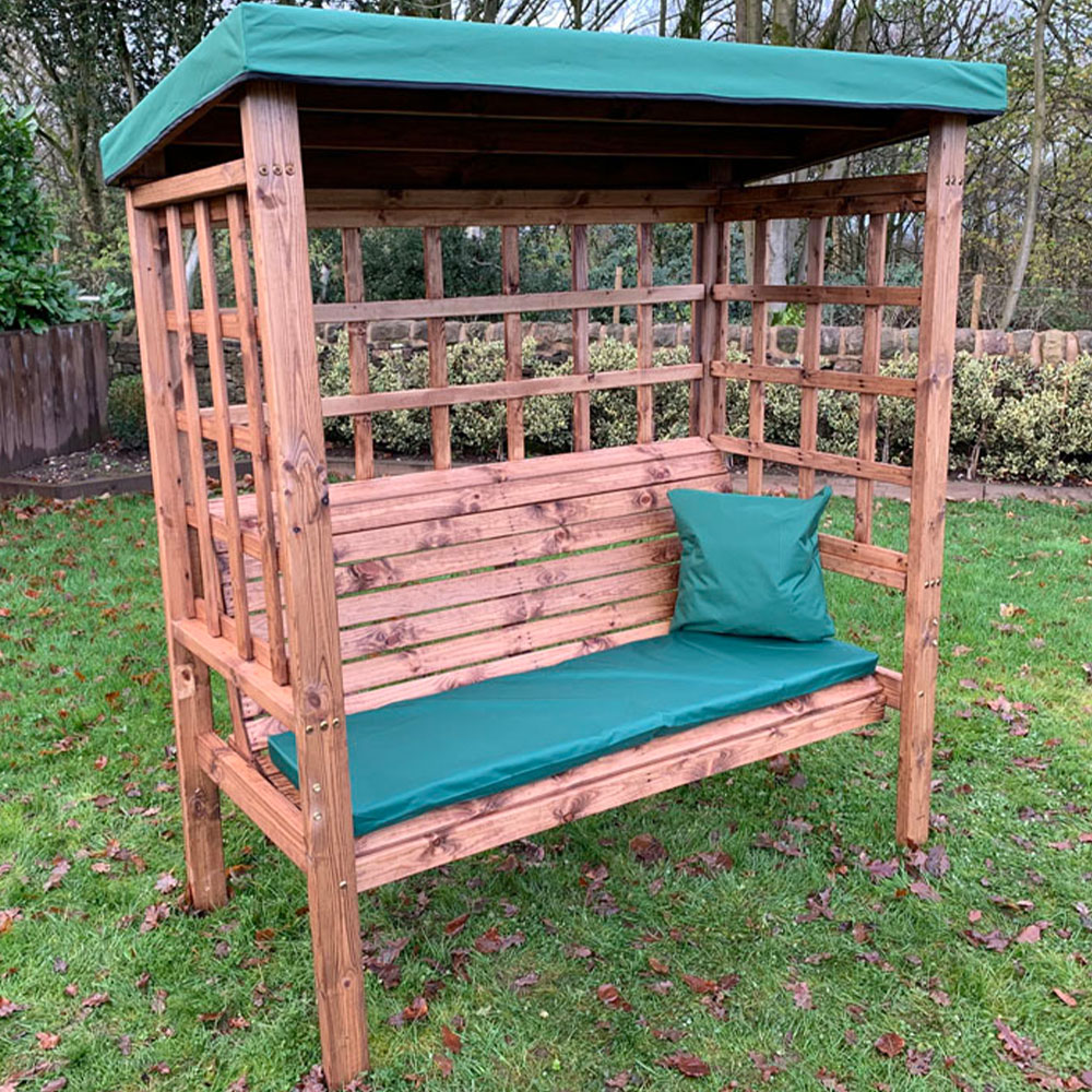 Charles Taylor Bramham 3 Seater Wooden Arbour with Green Canopy