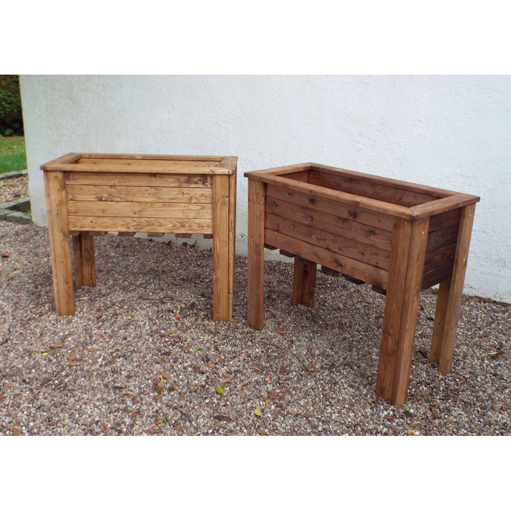 Elevate your outdoor area with the Charles Taylor Medium Wiltshire Trough, a charming addition to any garden. This trough, crafted with a traditional English style, is perfect for growing herbs and vegetables, thanks to its convenient raised design which helps with planting. Featuring drainage slats and the option for lining, it offers versatility for all your planting needs. Each trough is hand-finished using sustainably sourced (FSC) wood, treated with an oil-based, water-repellent preservative, and secured with rustproof galvanised zinc bolting, ensuring the bolts are protected against corrosion and rusting. With an approximate volume of 62 litres, this trough comes with a 10-year rot-free guarantee. Please note that accessories shown are for illustrative purposes only. This item requires self-assembly and comes as a pack of two.