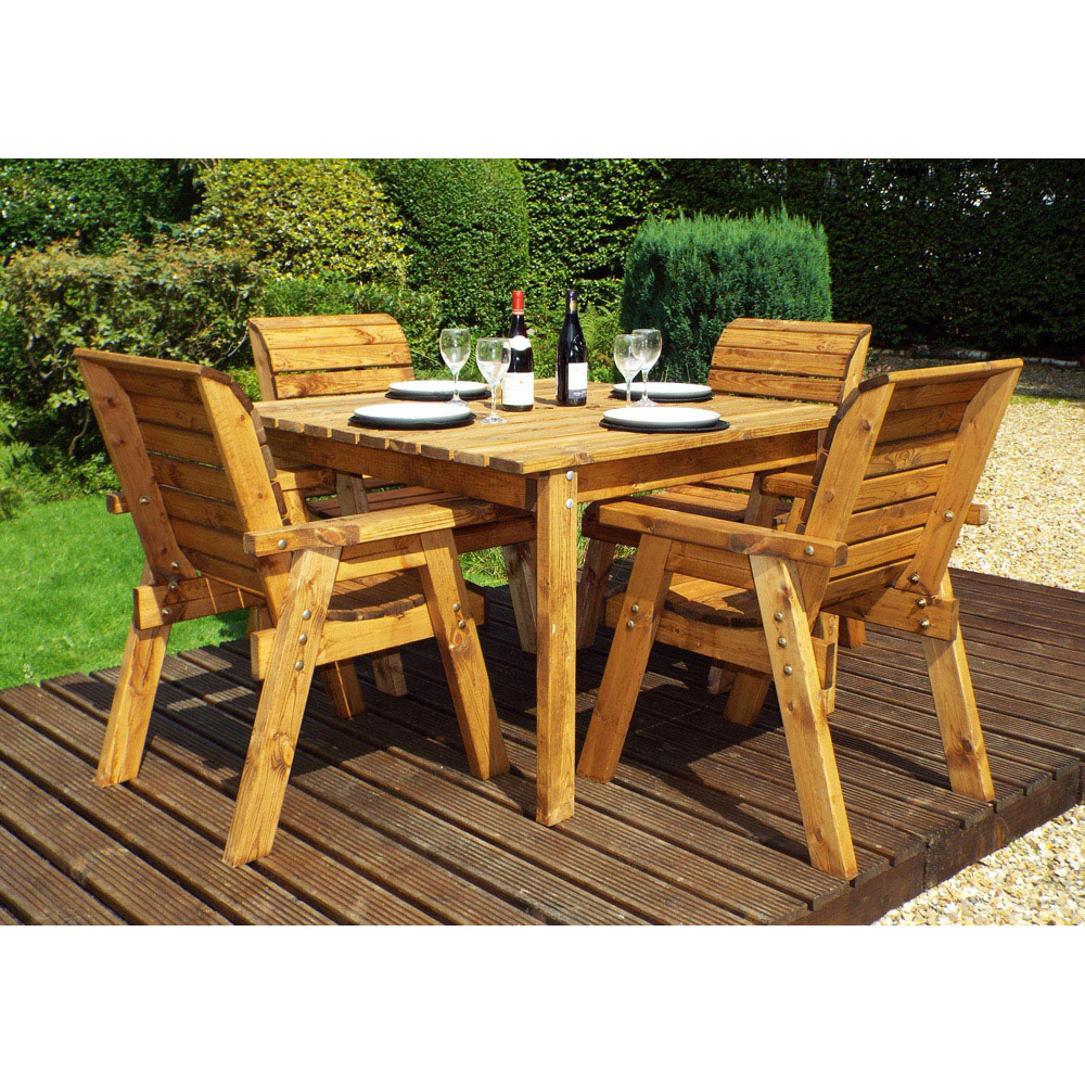 Charles Taylor Solid Wood 4 Seater Square Outdoor Dining Set with Grey Cushions