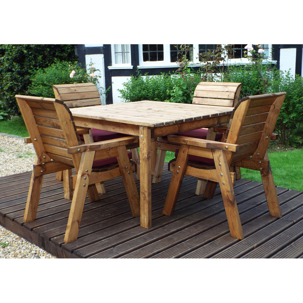 Charles Taylor Solid Wood 4 Seater Square Outdoor Dining Set with Red Cushions
