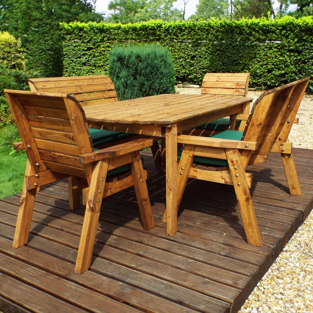 Charles Taylor Solid Wood 6 Seater Rectangular Outdoor Dining Bench Set with Green Cushions
