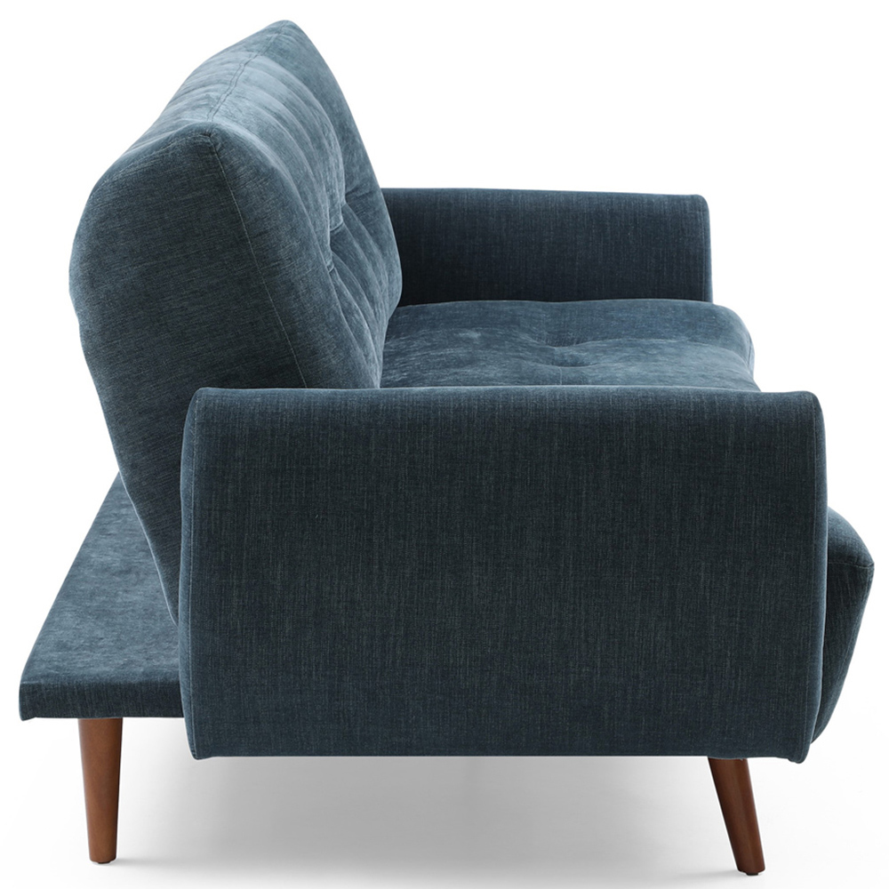 The Claire Double Sleeper, a versatile navy sofa bed, effortlessly blends with any décor, from traditional to modern. Crafted with plush chenille upholstery, its cosy foam and fibre filling provides comfortable seating, while a firm backrest ensures lasting support. The simple click-clack mechanism swiftly transforms it into a comfortable double bed, perfect for overnight guests. Finished with sturdy walnut wooden legs for stability, the Claire offers both style and functionality.