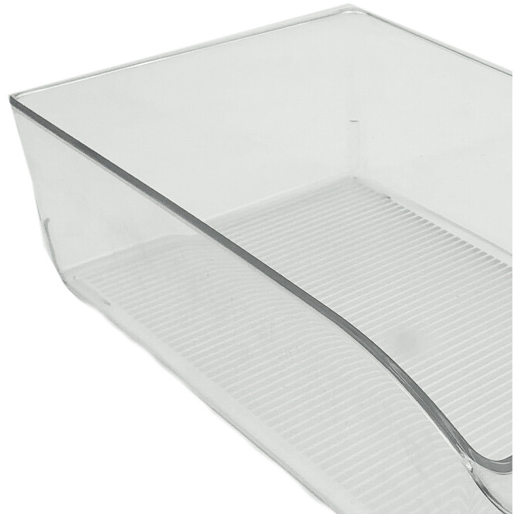Keep your refrigerator organised with this rectangle fridge organiser. Its durable construction is perfect for storing fruits, vegetables, drinks, and more. The convenient curved lip allows for easy access to its contents, keeping your fridge neat and tidy.