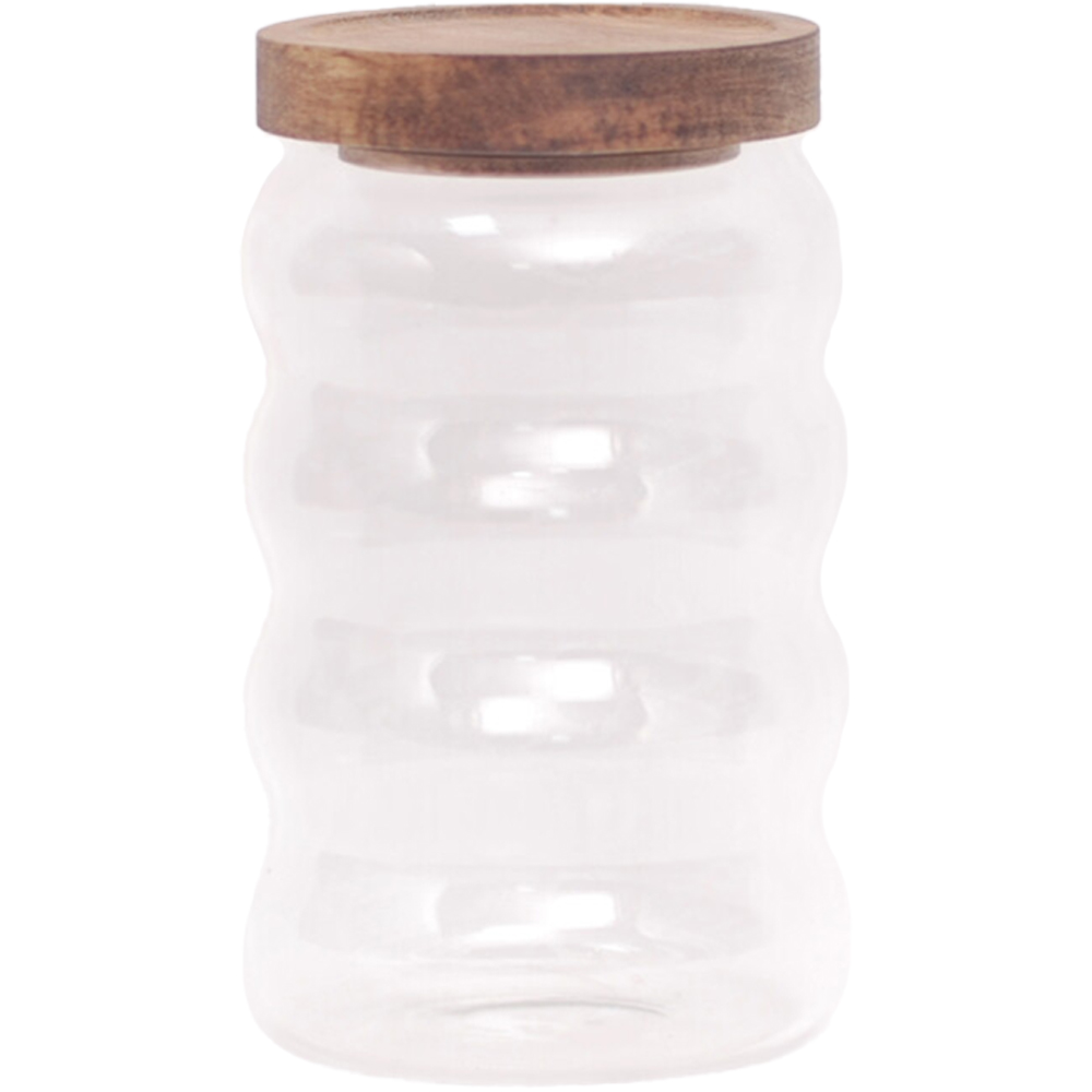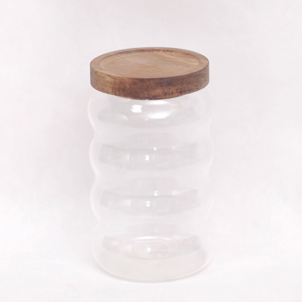 A stylish and practical kitchen storage solution. Its eye-catching wave design and clear glass body showcase your ingredients beautifully. The airtight bamboo lid ensures freshness, keeping your food ready to use.