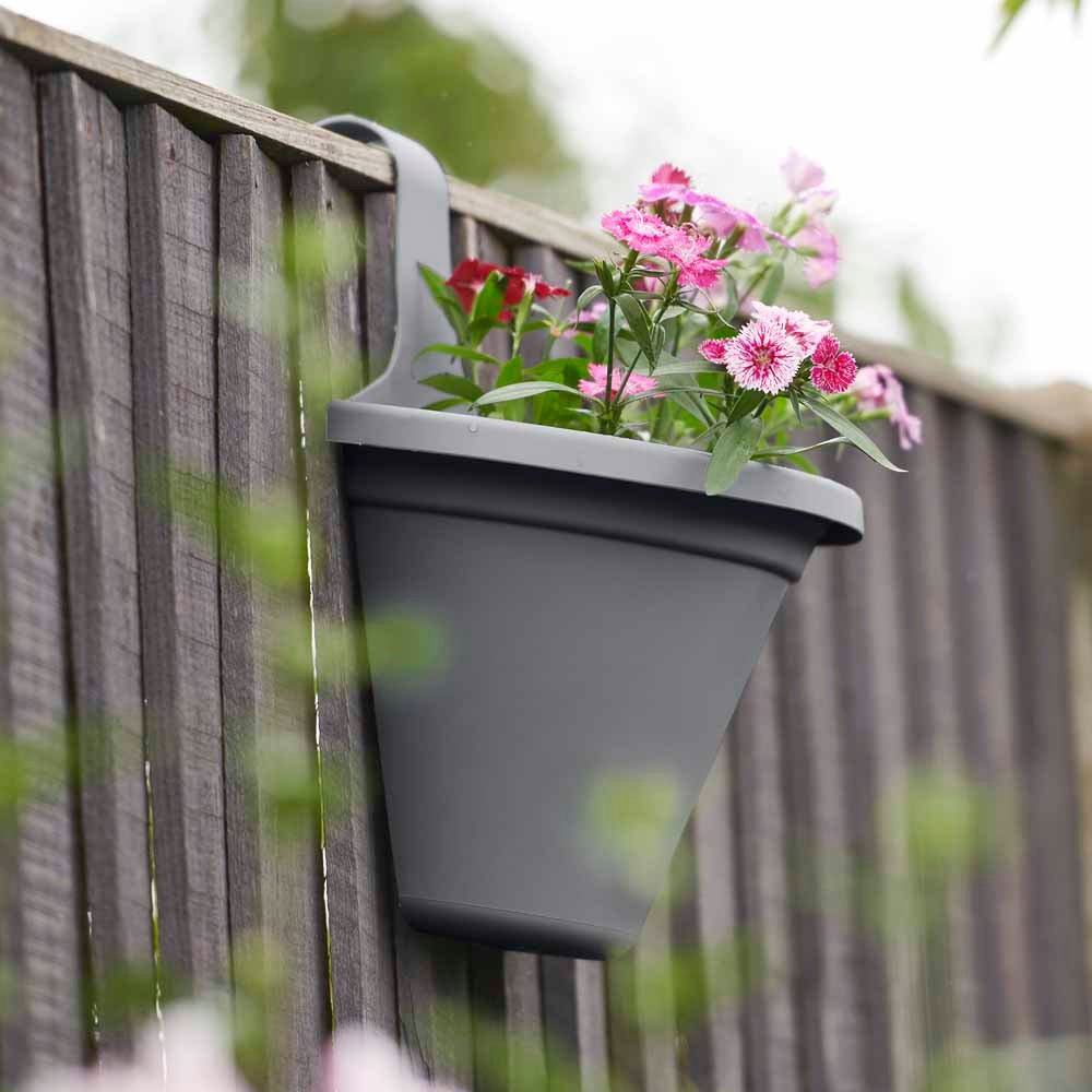 This handy hanging pot adds vertical interest and vibrant colour to your outdoor space. Simply hook it over fences, railings, or balconies up to 50mm wide—no tools required! Its integrated reservoir minimizes watering, while the durable ABS construction ensures lasting use. With a 3kg weight capacity, it',s perfect for a variety of plants. Choose from grey, terracotta, orchid, or sage. Dimensions: Ø18cm x W 18.2cm x H 28.8cm. Weight: 2.536kg.