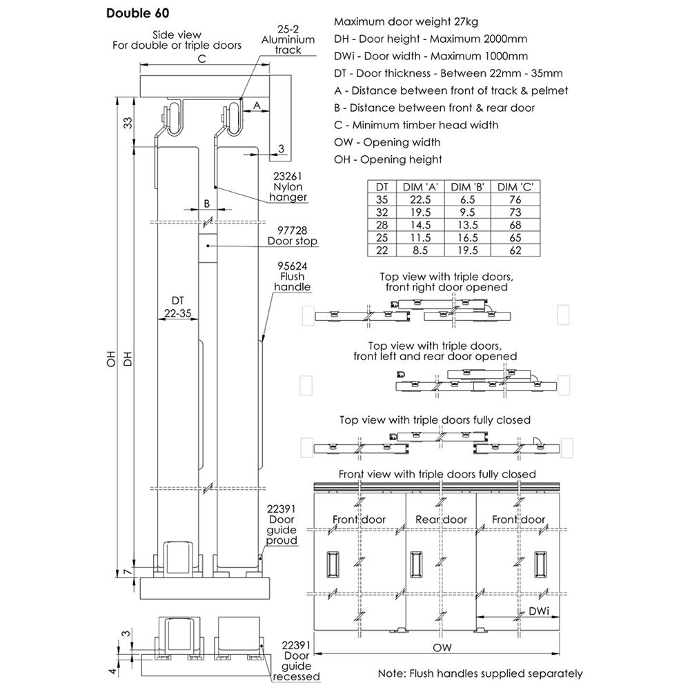 • Supports door weighing till 27kg and 22-35mm thickness