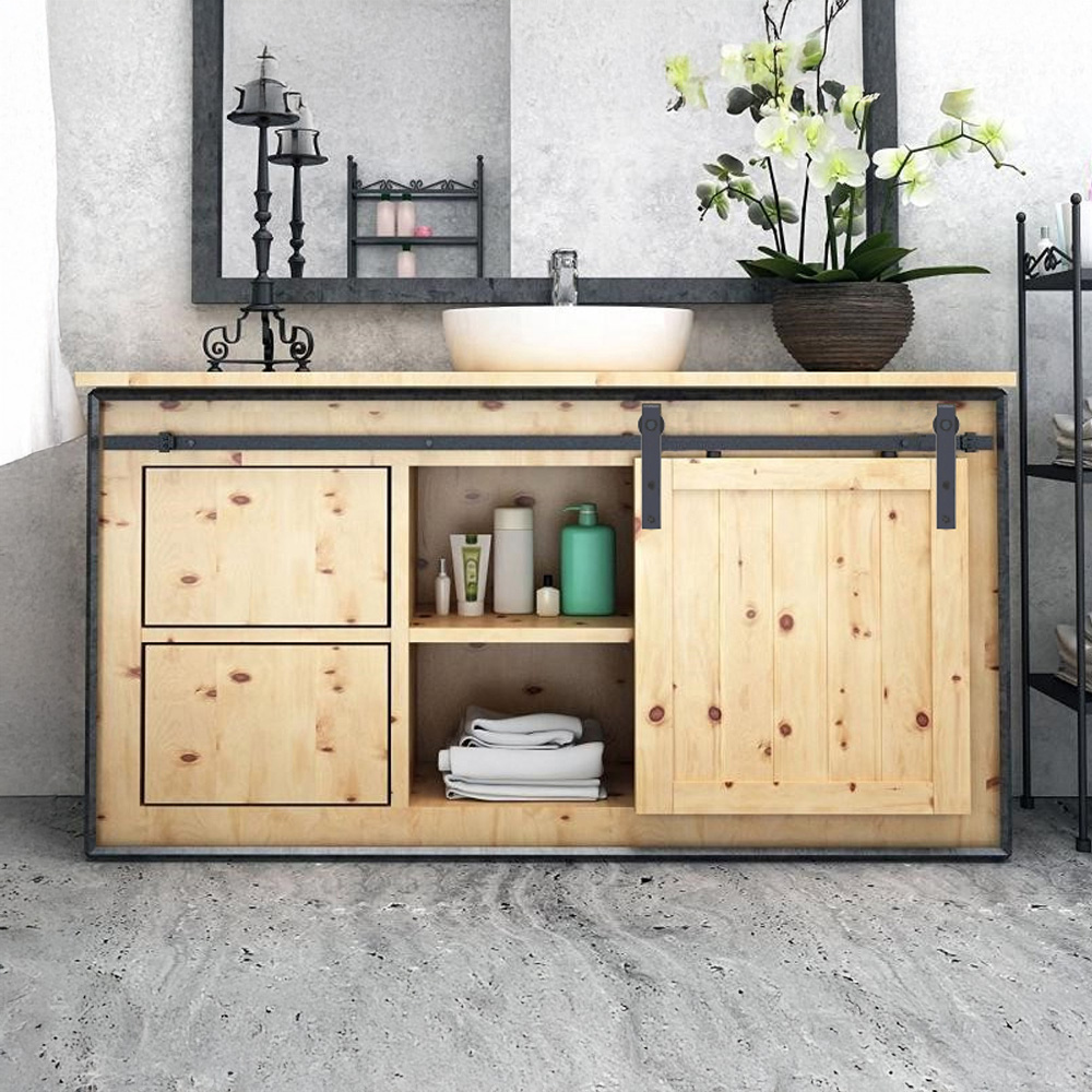 Update your interior design with the Flat Track Mini, a top-hung system designed for lightweight, single sliding doors, ideal for room entrances and storage solutions. This barn door style hardware showcases exposed fittings, lending a rustic charm to any interior home renovation project. Please note: doors are not included.