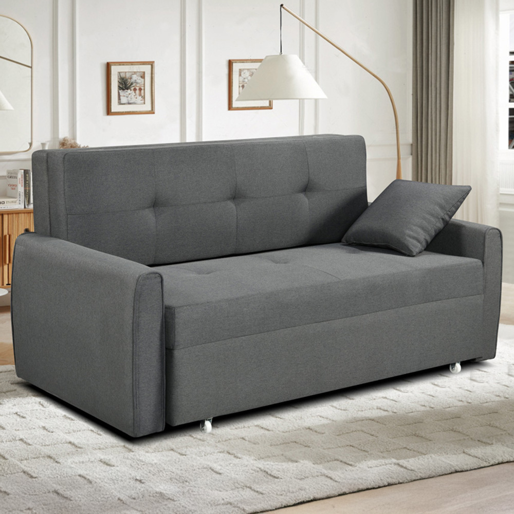 Comfy Living 2 Seater Linen Grey Pull Out Sofa Bed