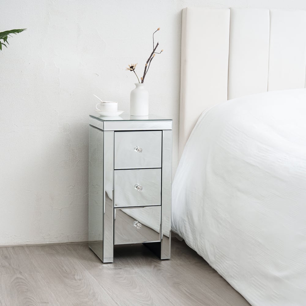 Comfy Living 3 Drawer Mirrored Bedside Table