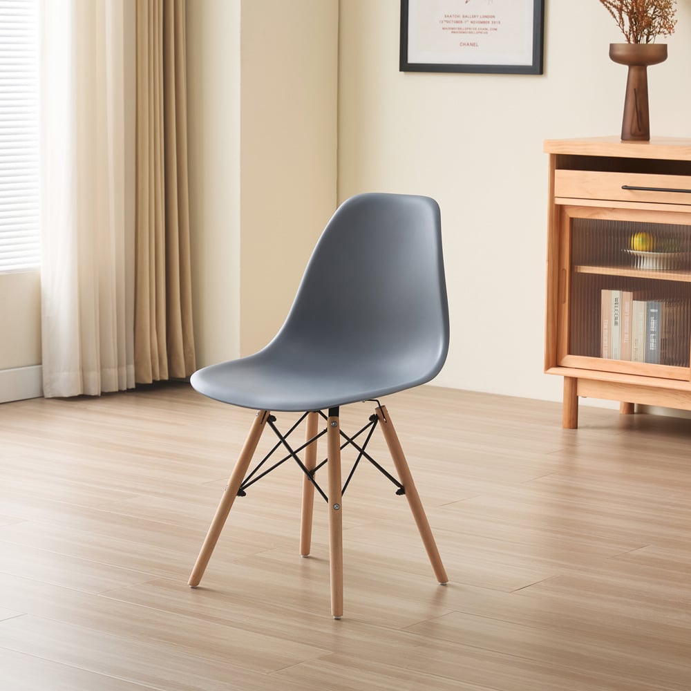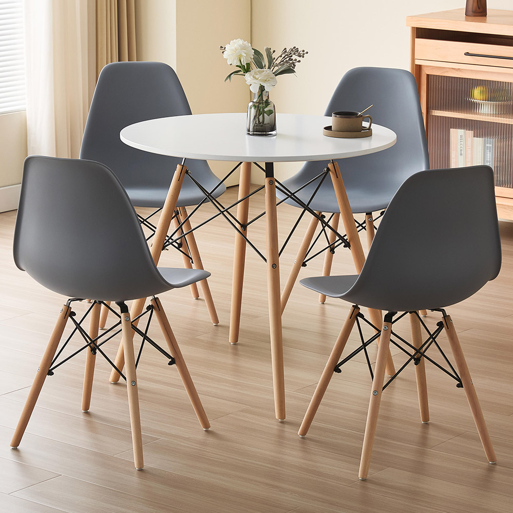 Introduce a touch of elegance to your dining space with the Comfy Living 4 Seater Round Dining Set in White and Grey. The smooth, white tabletop provides a clean, contemporary feel, offering ample space for family meals or entertaining guests. The four accompanying chairs are ergonomically designed and crafted with sturdy materials. They feature curved seats and supportive backrests for exceptional comfort. Natural wood-toned legs add a hint of mid-century charm to the overall aesthetic. Blending practicality with style, this dining set is sure to become a centrepiece in your home. Chair Dimensions: H81 x W46 x D51.5cm.