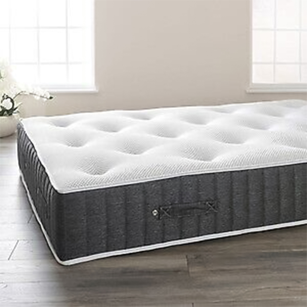 Drift away in comfort with the Comfy Living Double Grey Pocket Sprung Memory Foam Glitzy Mattress. This mattress features individually nested pocket springs that provide full-body support. These springs operate independently, ensuring weight is evenly distributed across the mattress. You won’t have to worry about disturbing your partner when you move at night, as each pocket spring adjusts to the specific pressure applied to it, preventing both of you from rolling toward the centre of the mattress. The luxury knitted material used in the sleep zone is designed to enhance your sleeping environment by wicking away moisture and regulating temperature, allowing you to enjoy a restful night's sleep.