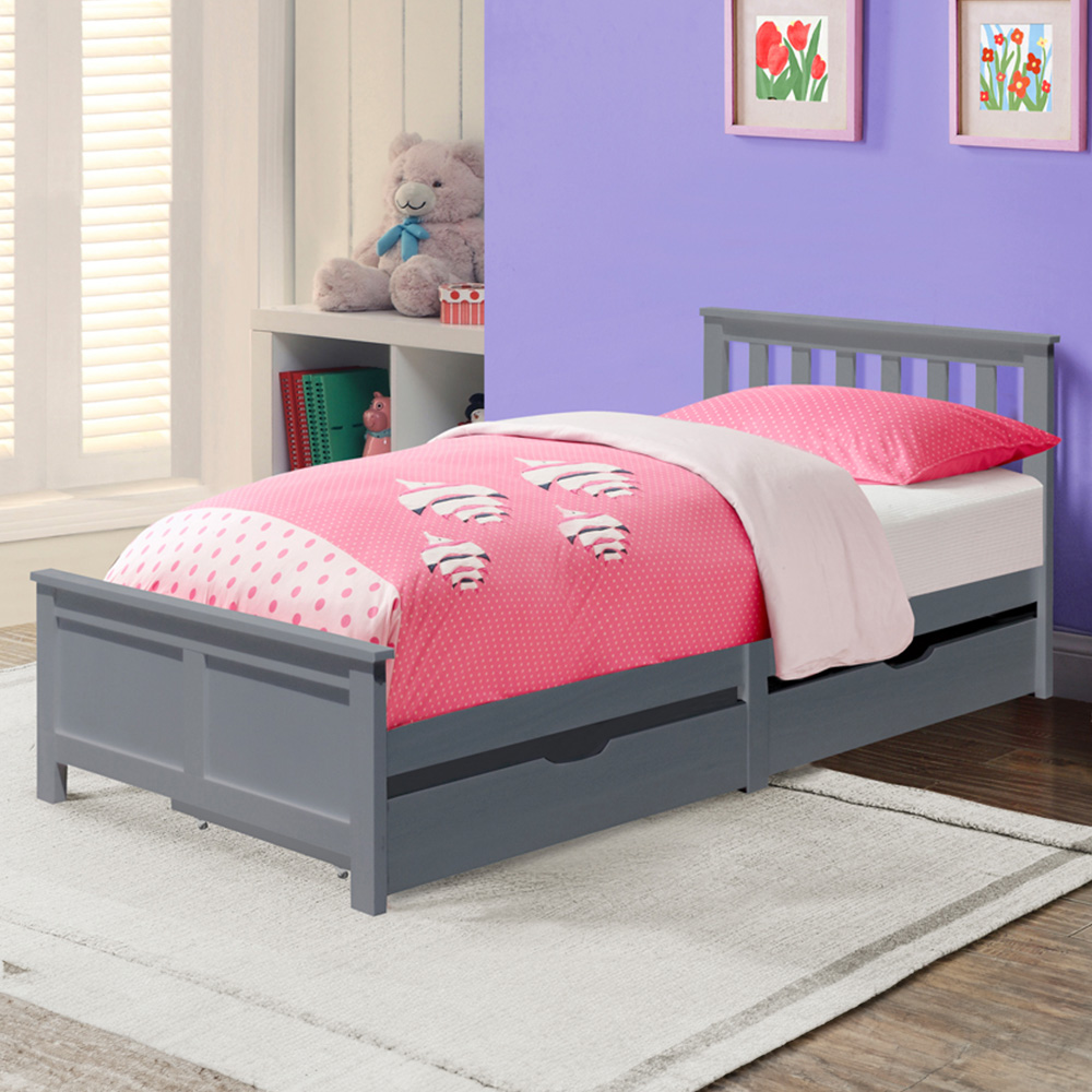 Comfy Living Single Grey Wooden Bed with 2 Drawer