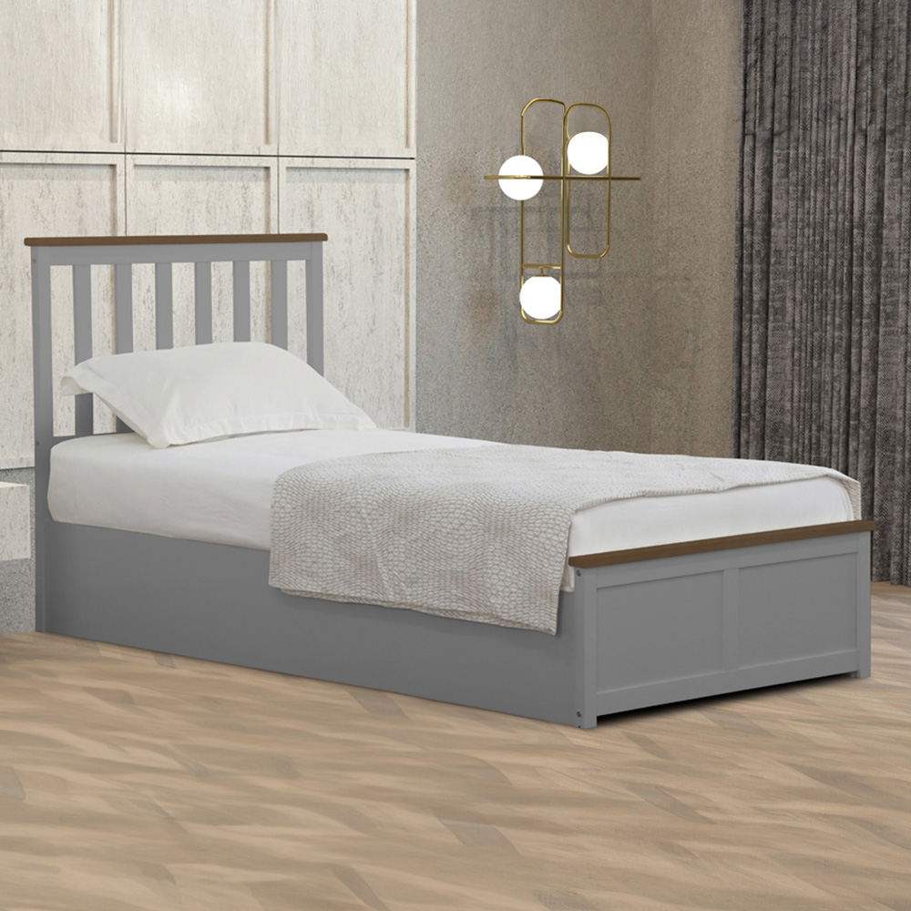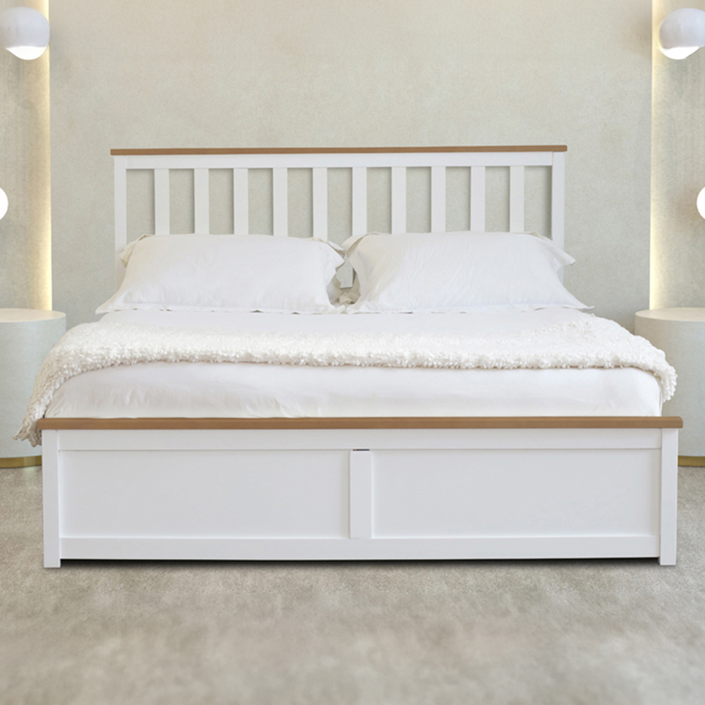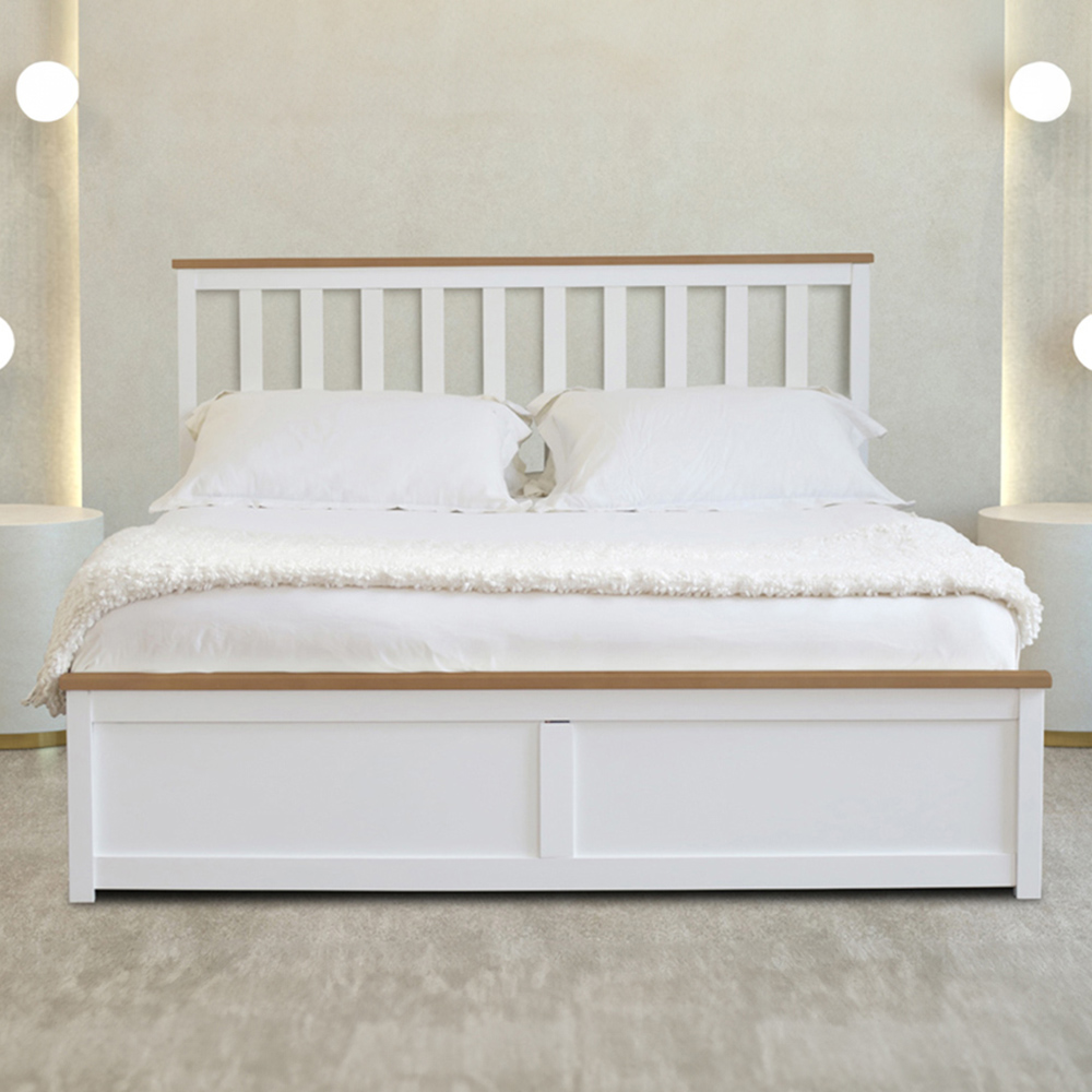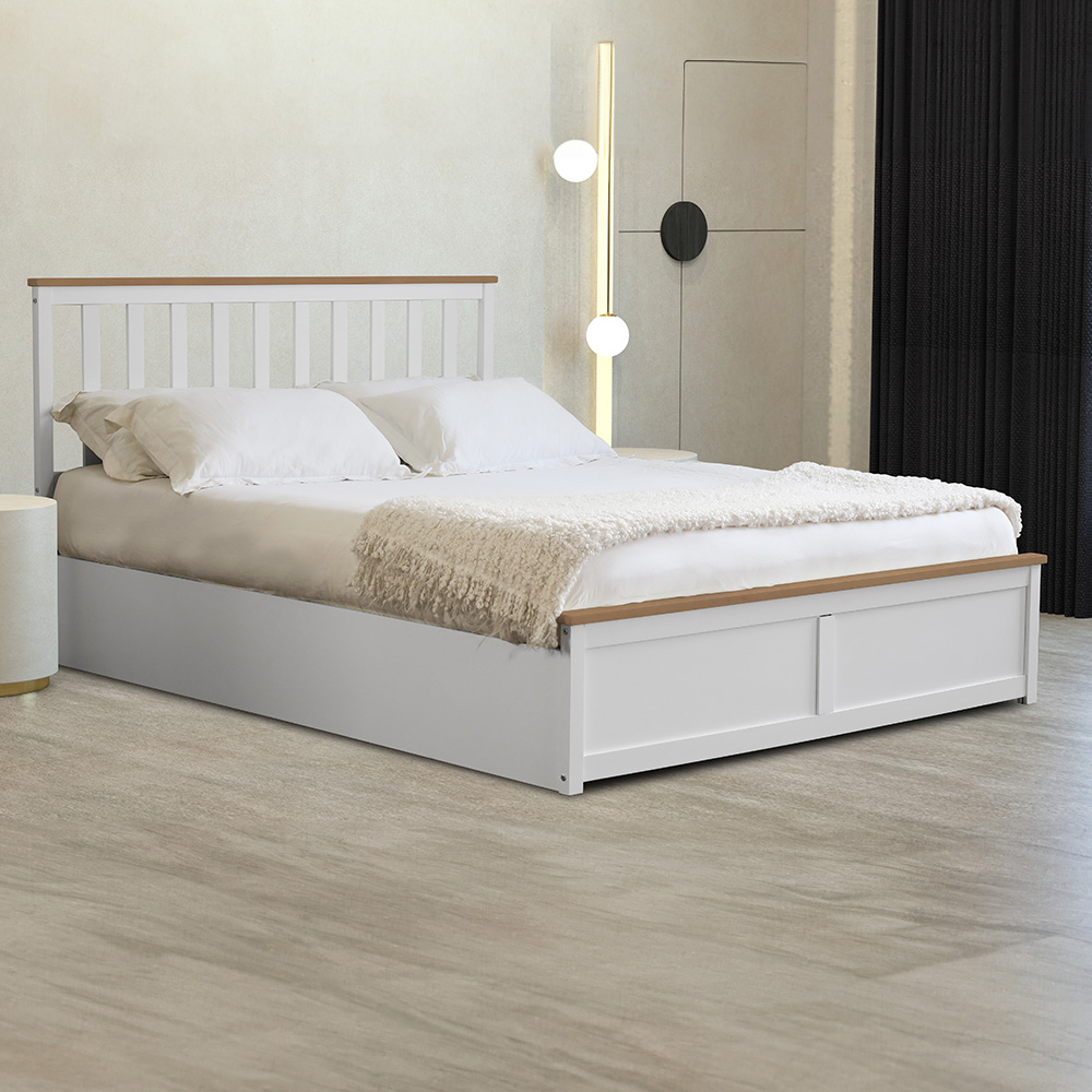 The Comfy Living Single White Gas Lift Ottoman Bed offers both style and practicality, making it a superb addition to any bedroom. Finished in whitewash, the frame is enhanced by caramel detailing on the head and foot ends, adding a touch of elegance. Featuring a slatted headboard and a low footboard, this bed frame delivers a classic look while ensuring maximum comfort. Gas hydraulic pistons allow for effortless access to the spacious storage space beneath. Designed to accommodate any UK standard 3ft mattress.