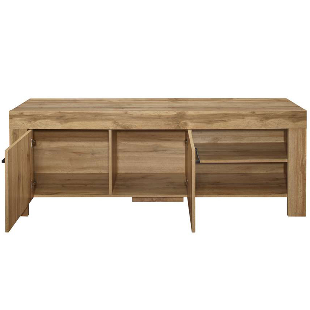 Elevate your living space with the Compton 2-Door Oak TV Unit. Its classic oak design complements both modern and traditional interiors, offering a stylish and practical storage solution. Featuring two large shelves for entertainment components and two large drawers perfect for DVDs, blankets, and more, this affordable unit boasts sleek black handles. Suitable for TVs up to 55 inches. Care: Gently wipe with a soft, dry cloth.