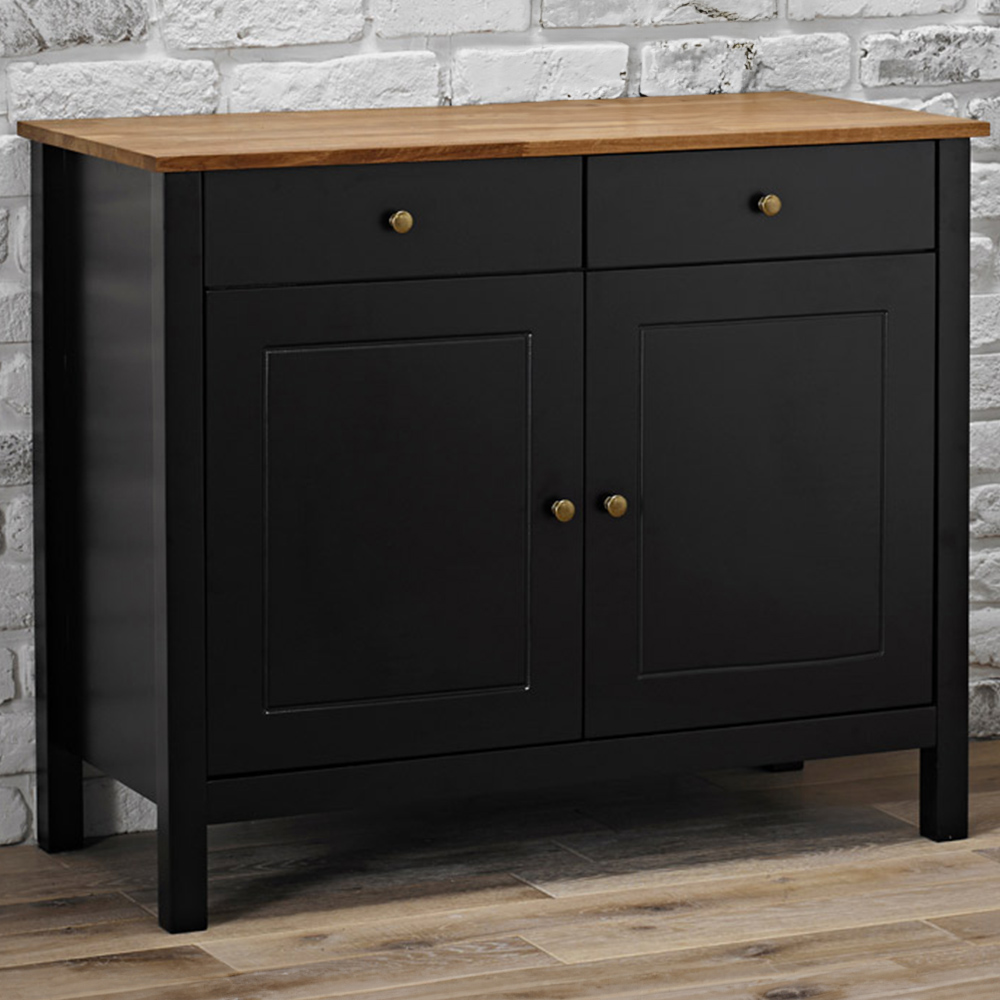 Enhance your living space with the LPD Furniture Copenhagen 2-Door 2-Drawer Sideboard. This piece, from the stylish Copenhagen range, is crafted primarily from solid, finger-jointed oak, finished with a striking black paint and oiled wood combination. Its understated elegance complements a variety of interior styles, offering both practicality and aesthetic appeal. The two doors and two drawers provide ample storage for your essentials. This sideboard is a timeless addition to any home, bringing both style and functionality to your living or dining area.