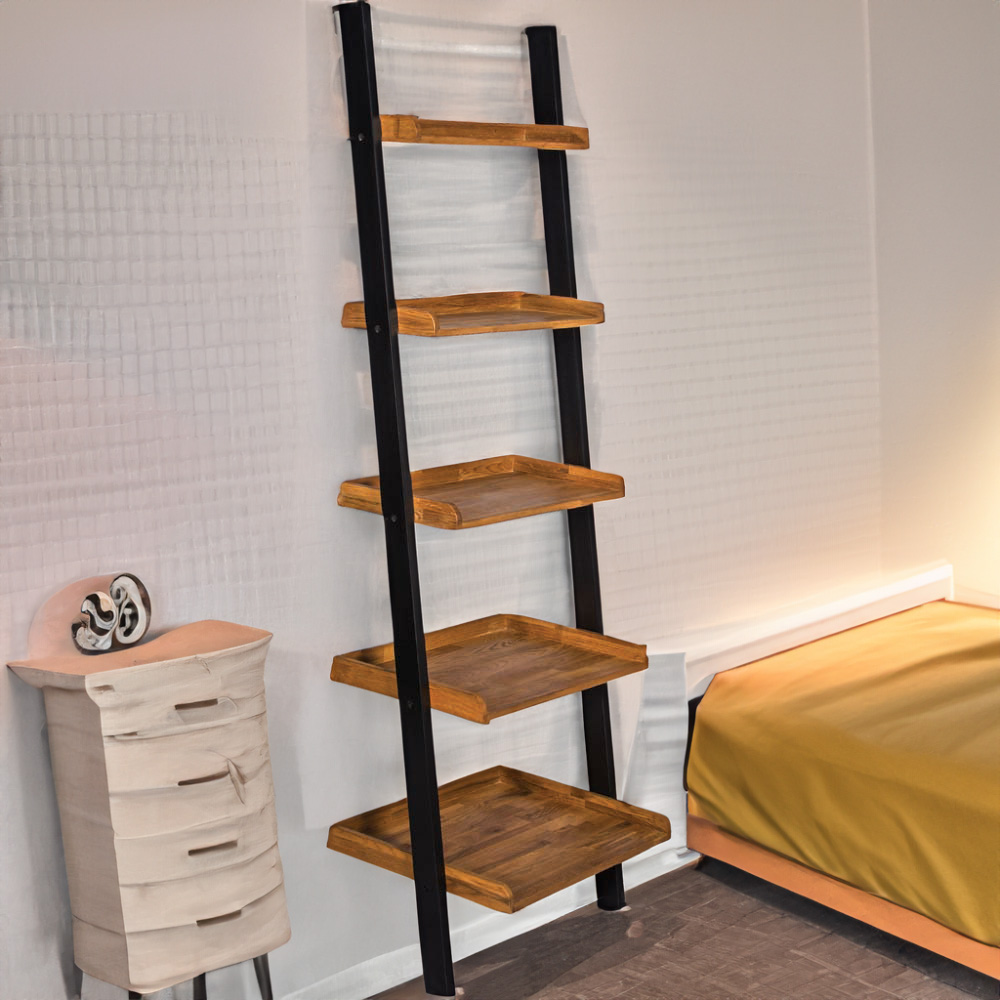 Copenhagen 5 Shelf Solid Oak Ladder Bookcase
