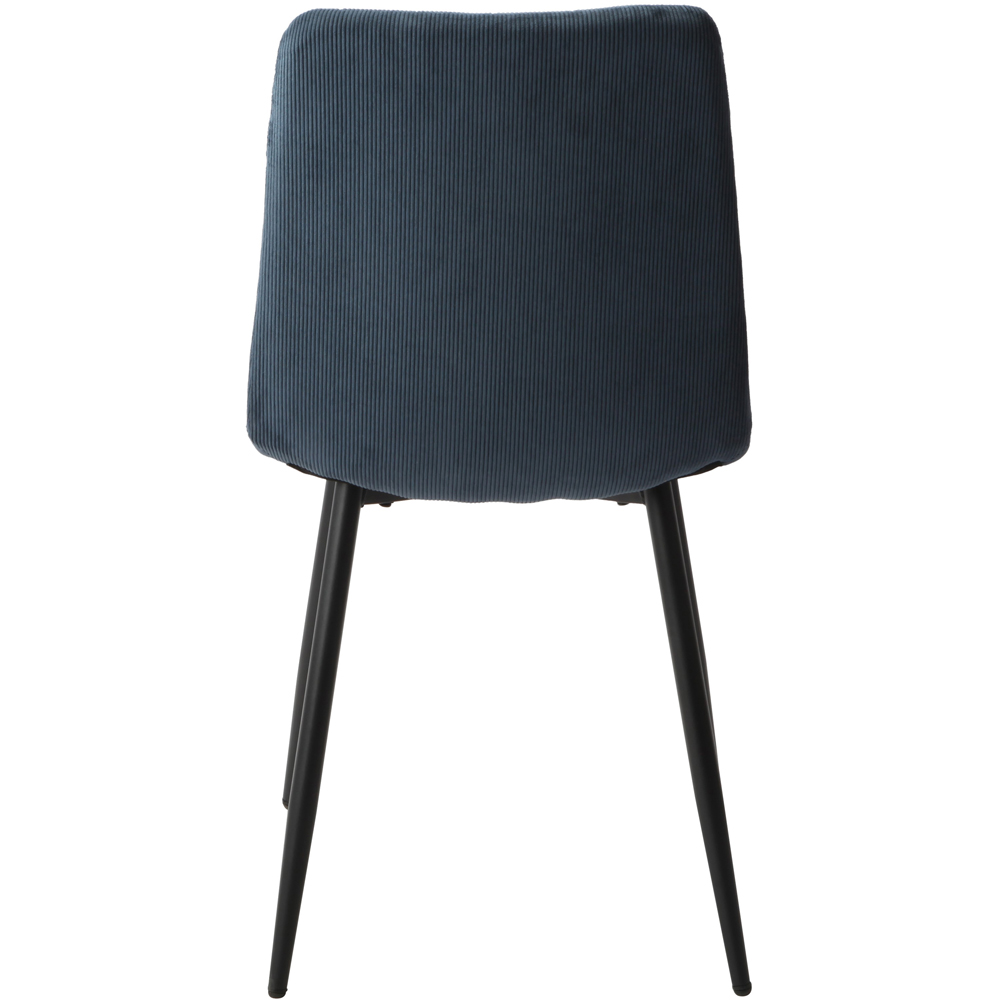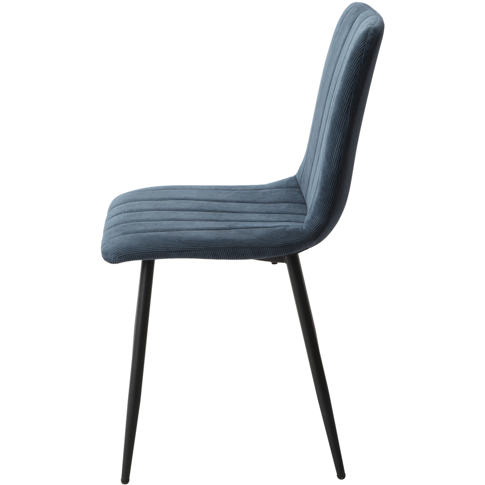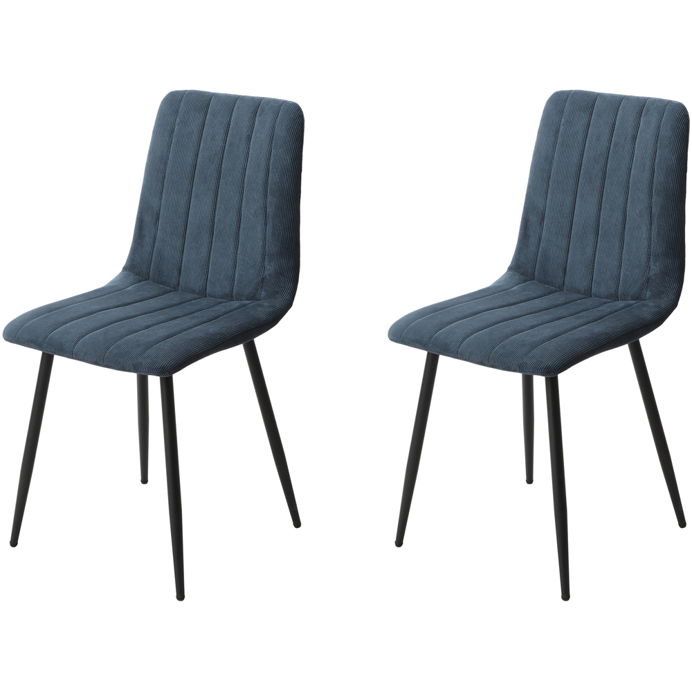 Elevate your dining experience with the Aspen dining chair set. This pair of blue and black straight-stitch fabric upholstered chairs boasts a modern aesthetic, thanks to sleek black metal legs that complement any décor. Their stylish design doesn't compromise comfort, each chair features a foam-filled seat and back for extra cushioning, and a sturdy two-part steel underframe with tapered legs built to last. Enjoy both comfort and quality with this versatile set, perfect for everyday use and a variety of dining tables. Fixings are included.