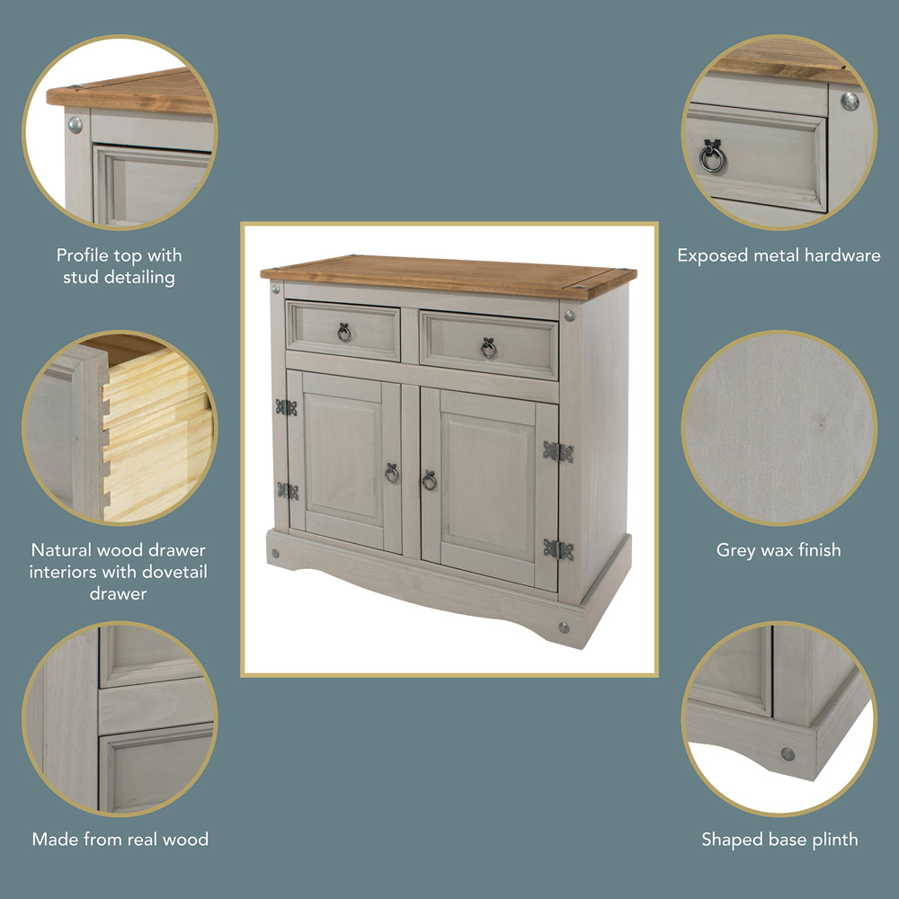 Core Products Corona 2 Door 2 Drawer Grey Small Sideboard
