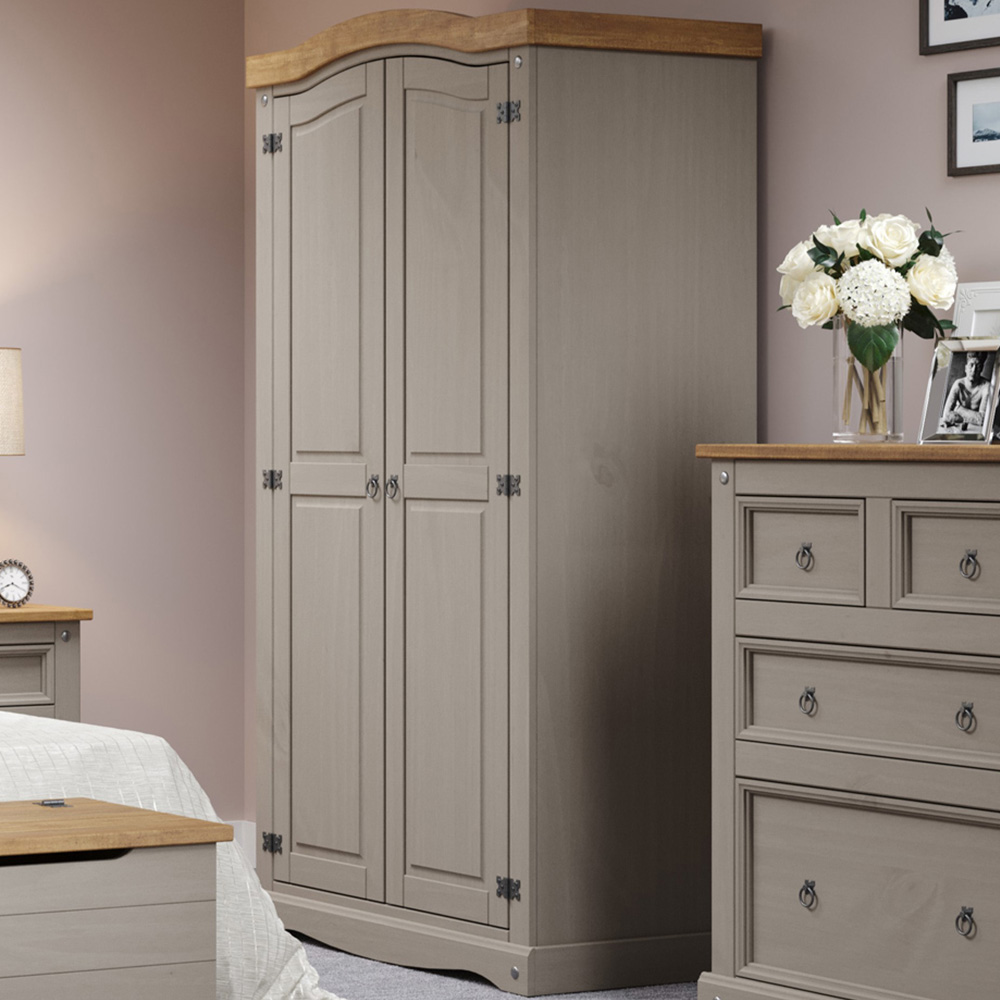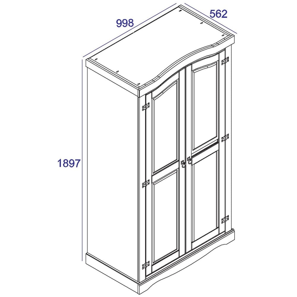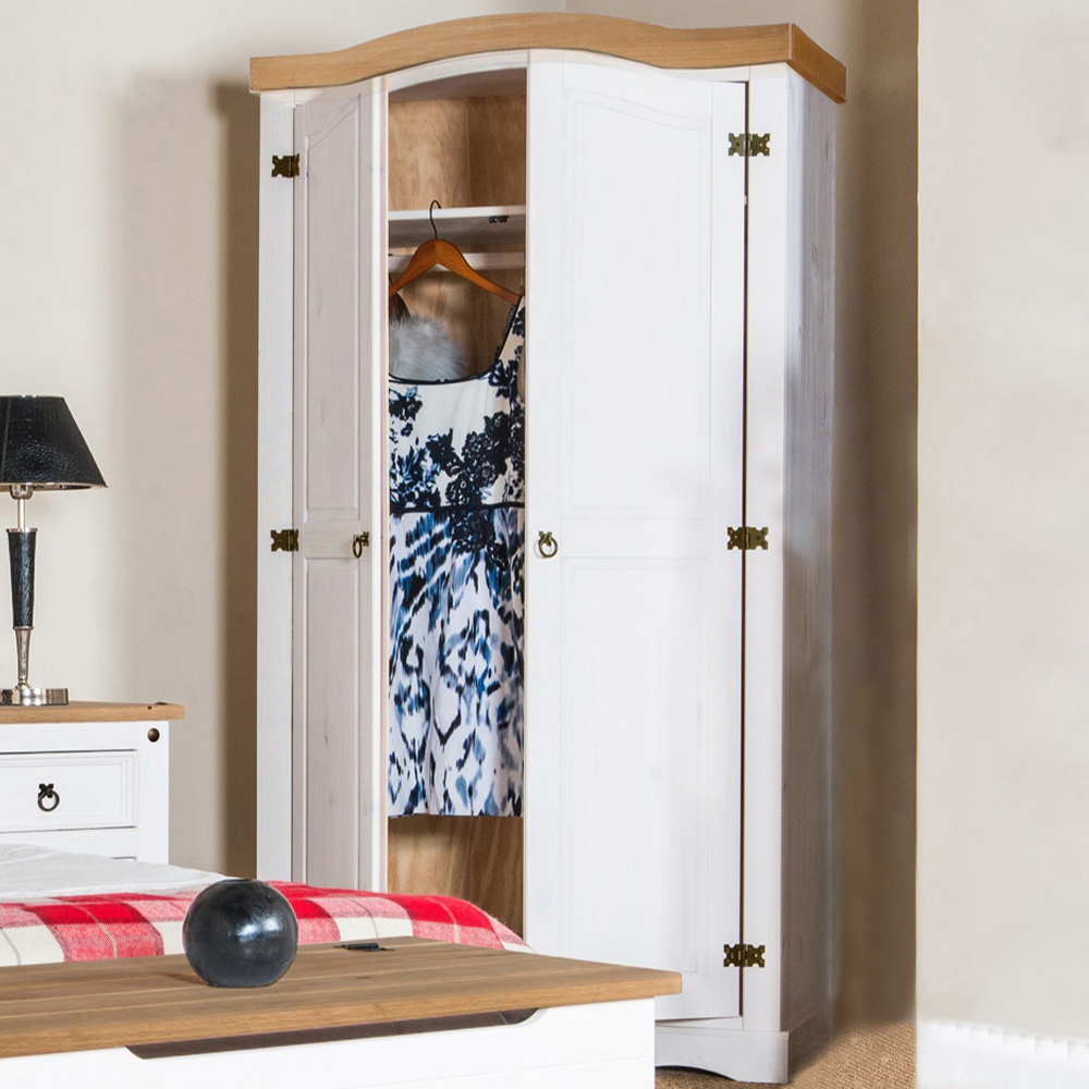 Elevate your home's aesthetic with the Corona Wardrobe. Crafted from responsibly sourced pine and finished with an antique-style wax top arch for a rich, classic look, this white wardrobe offers a timeless design that complements both modern and traditional interiors. Its two-door design features metal handles and hinges, adding to its antique appeal. Inside, you'll find a shelf and hanging rail for convenient clothing storage. Easy assembly is ensured with comprehensive instructions.