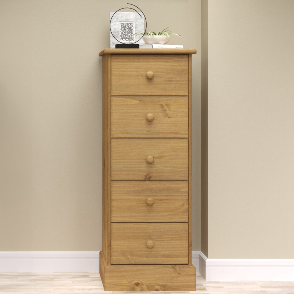 Core Products Cotswold 5 Drawer Pine Narrow Chest of Drawers