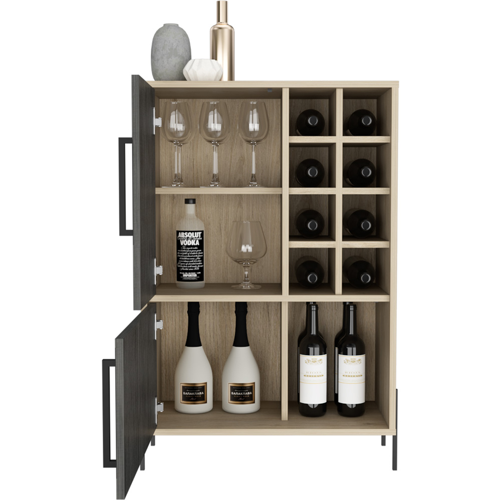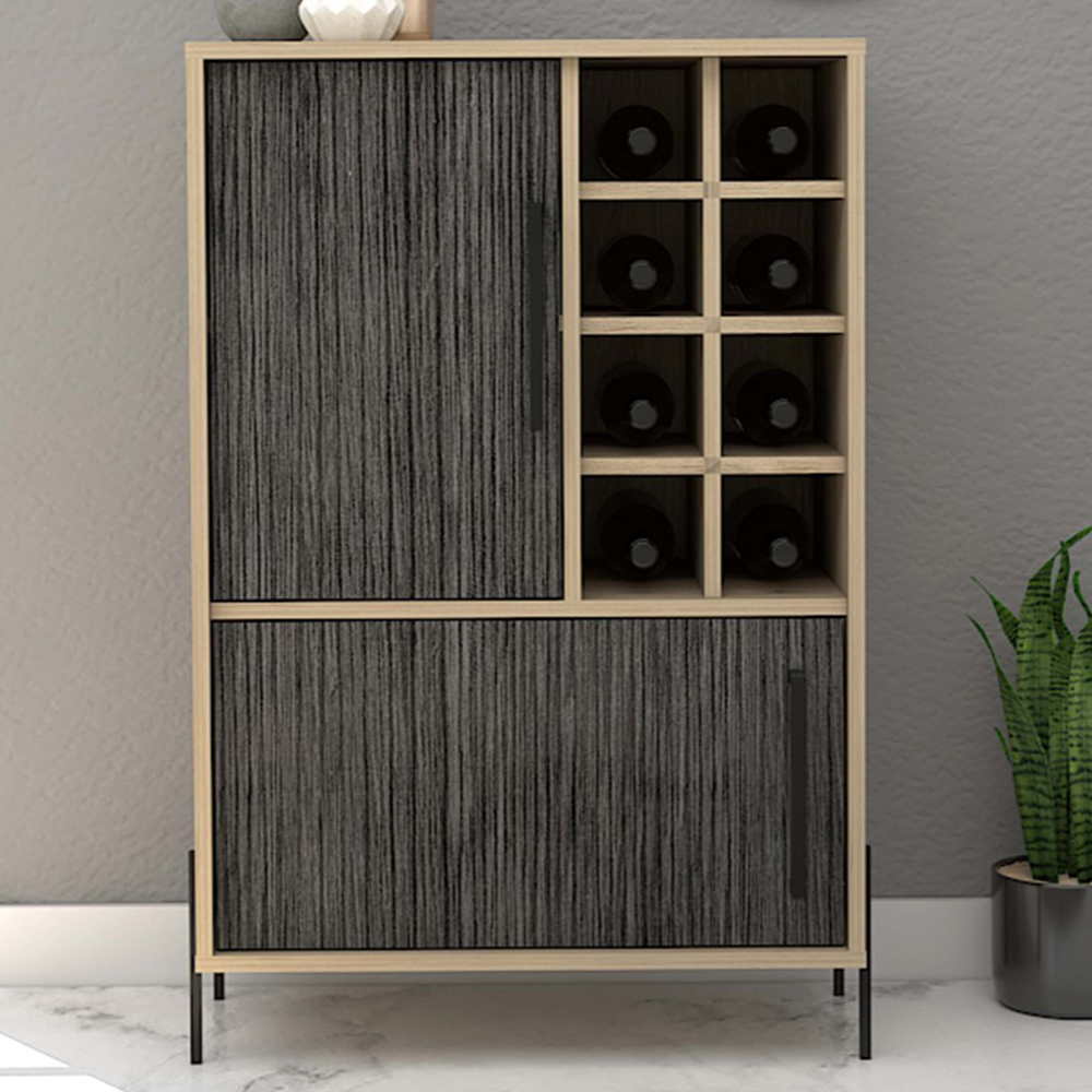 Elevate your home',s style with the Harvard Drinks Cabinet. This space-saving cabinet offers ample storage for your drinks collection and glassware, seamlessly blending functionality with sophisticated design. Two practical cupboard doors, complete with inner shelves and sleek metal handles, conceal your bottles. Eight dedicated bottle holders keep everything neatly organised. Crafted from durable, easy-clean washed oak with a stylish carbon grey oak effect melamine finish and genuine metal hardware, this cabinet is built to last. Standing proudly on real metal legs, it',s perfect for smaller spaces in your lounge, dining room, or hallway. Simple step-by-step assembly instructions are included.